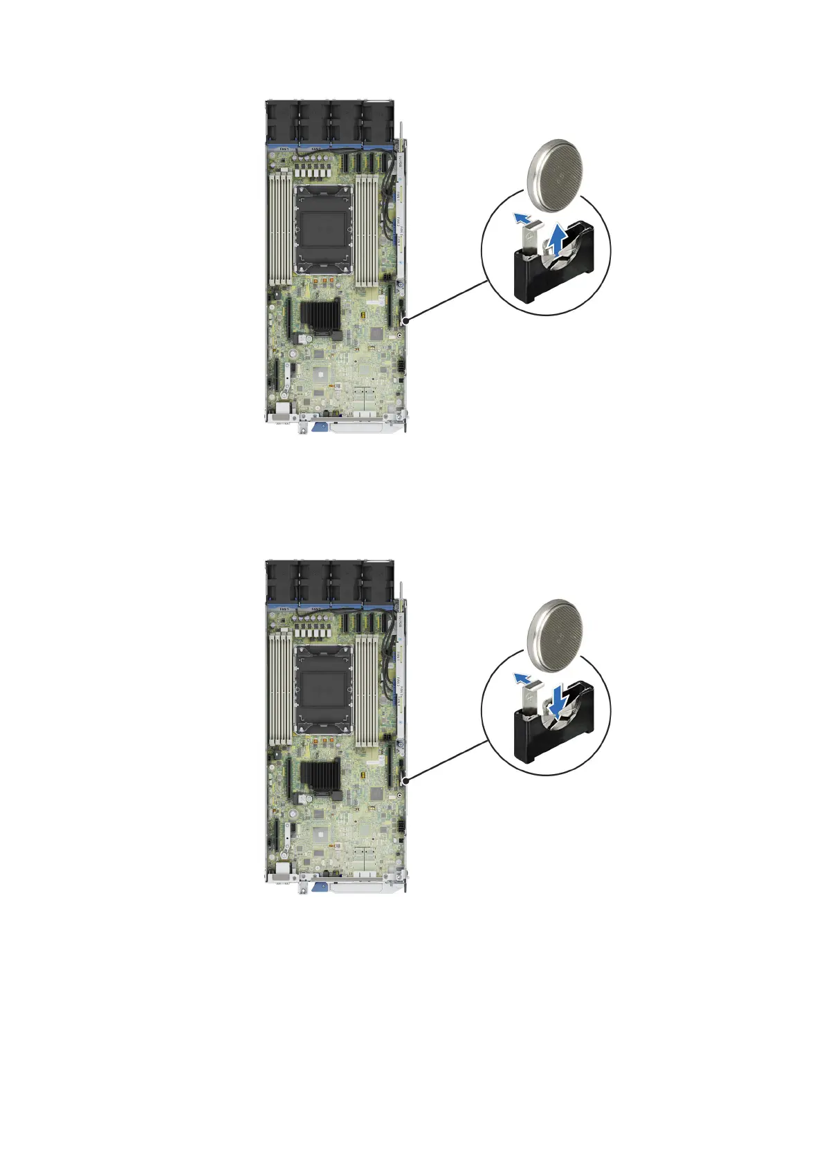 a. Hold the battery with the positive side facing up and slide it under the securing tabs.