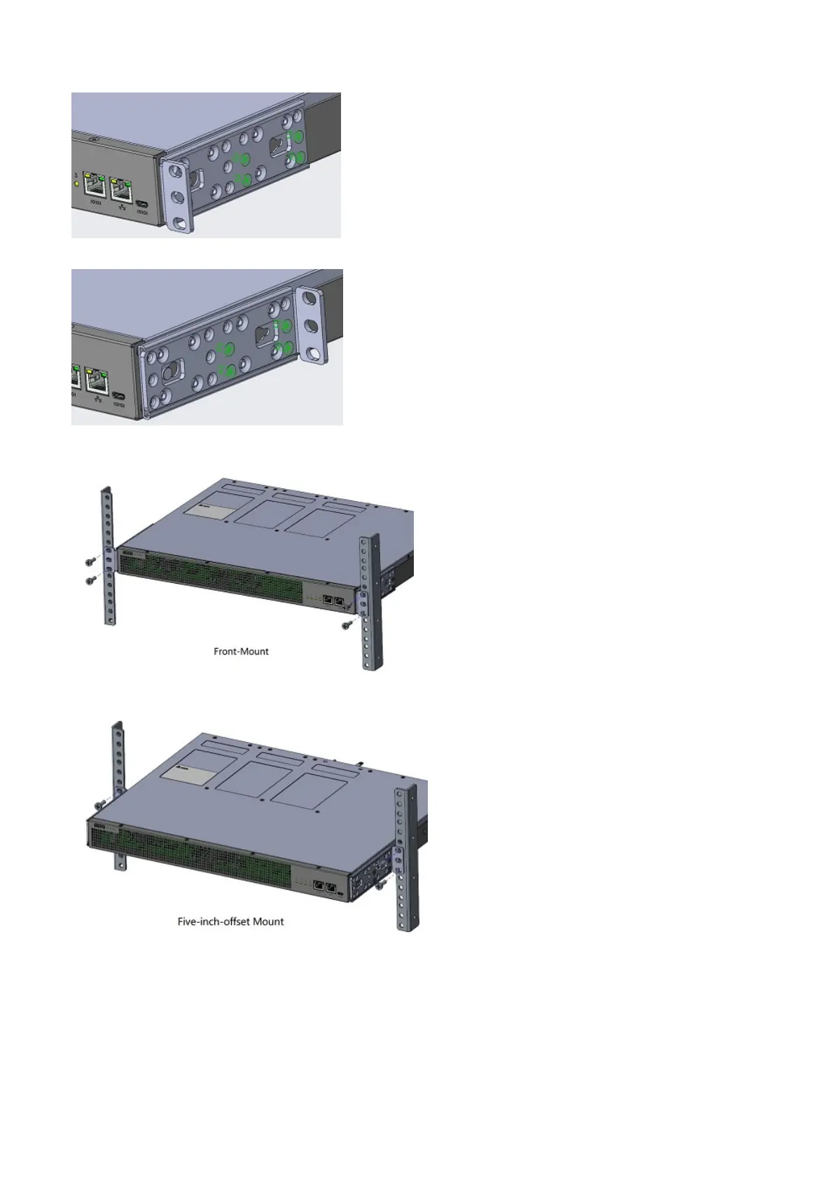 To remove the switch from the rack, unscrew the four #12-24 rack-mounting screws.