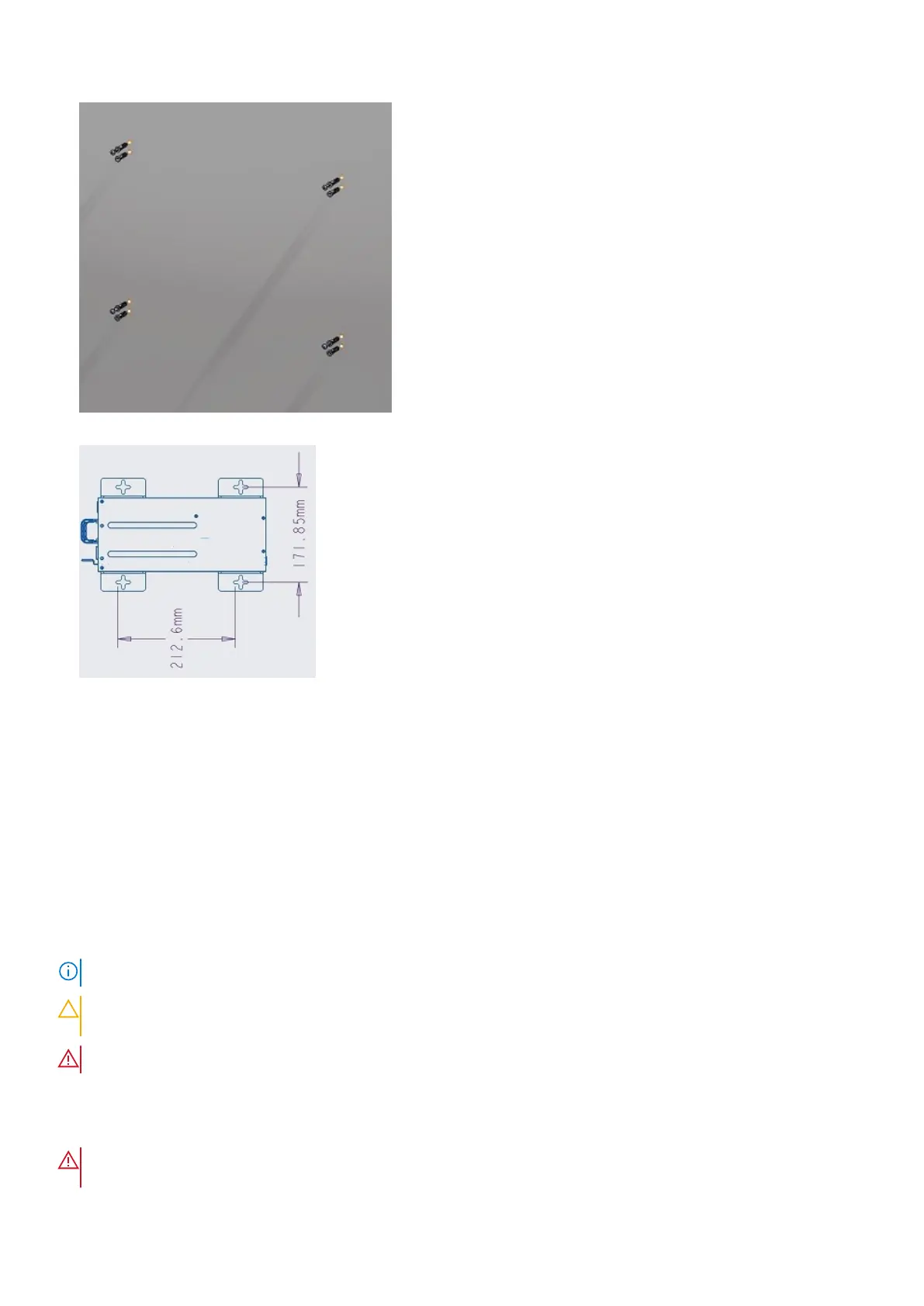 7. Screw four M5 screws into the four wall-mount anchors leaving approximately 0.20 in (5 mm) gap between the anchor and