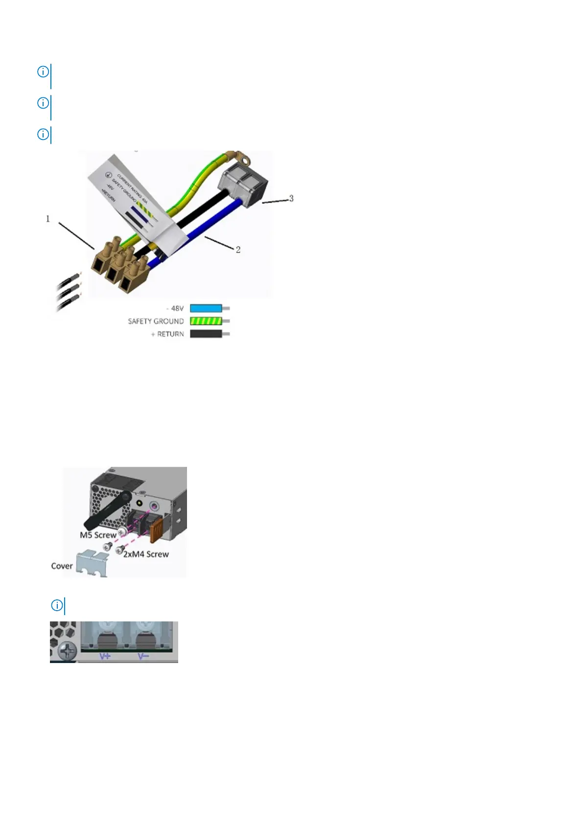 NOTE: Dell Technologies recommends using a 40 A circuit breaker. Before you supply 1300W DC current to the switch,