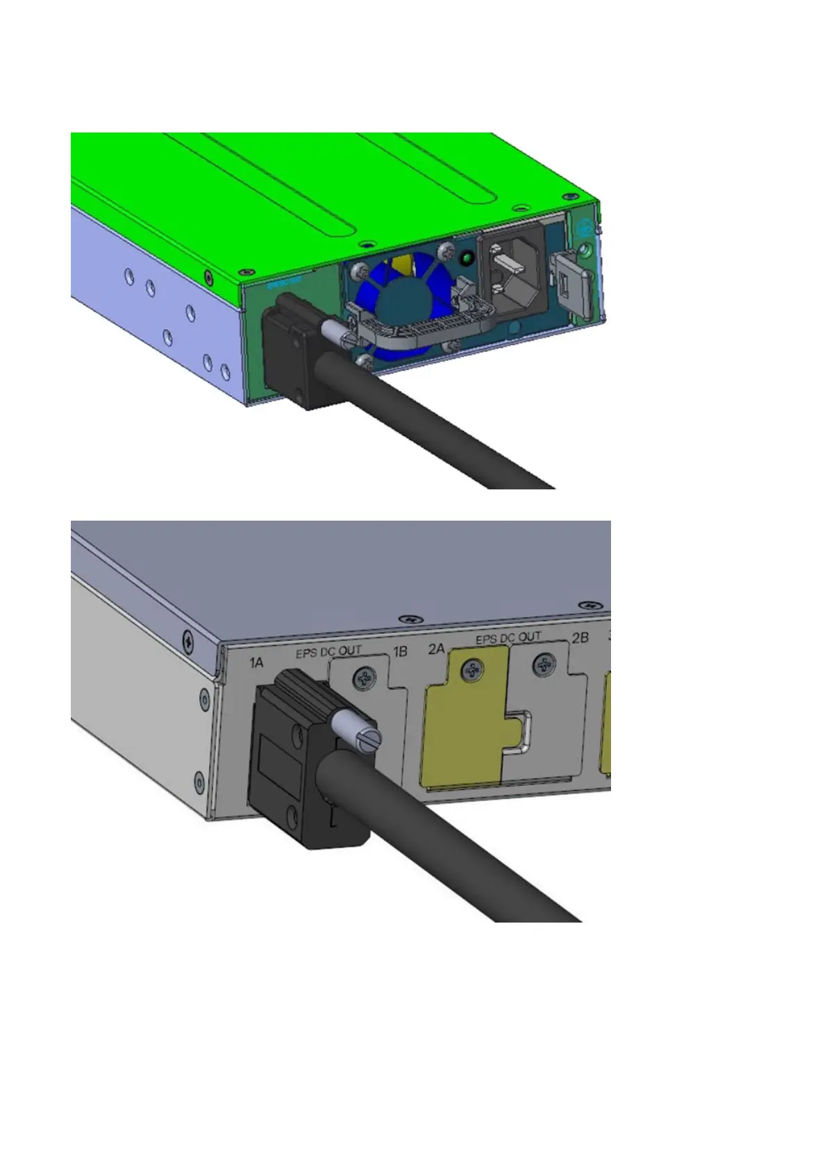 Two EPS power cables connected to a MPS-3S shelf