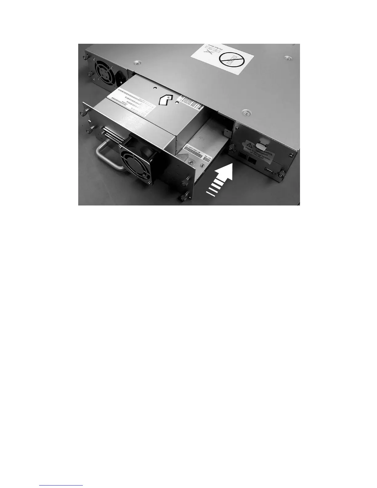 Figure 10-8. Pushing the drive sled into the library (drive sled without ESD springs shown)