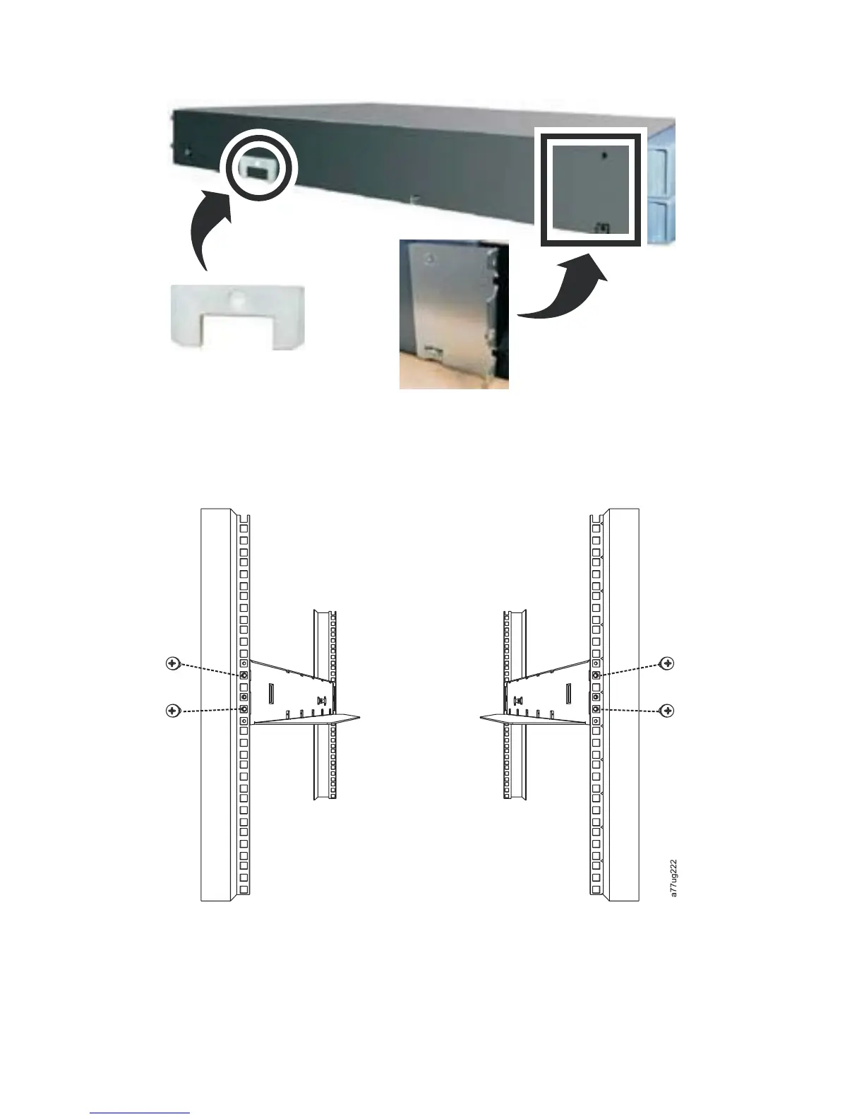 Figure 10-24. Mounting brackets and anchors for securing the library in a rack (one bracket and anchor on each side