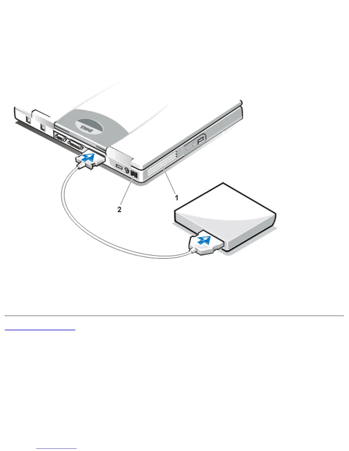 Connect the other end of the cable to the media bay connector at the back of the computer (see