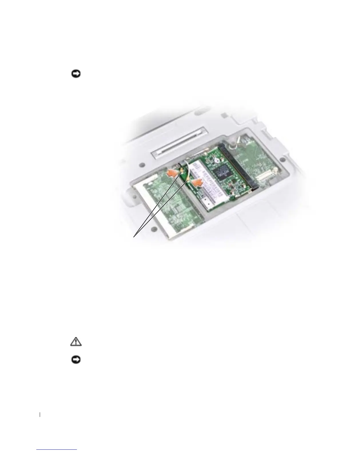 10 Connect the antenna cable to the antenna connector on the Mini PCI card.