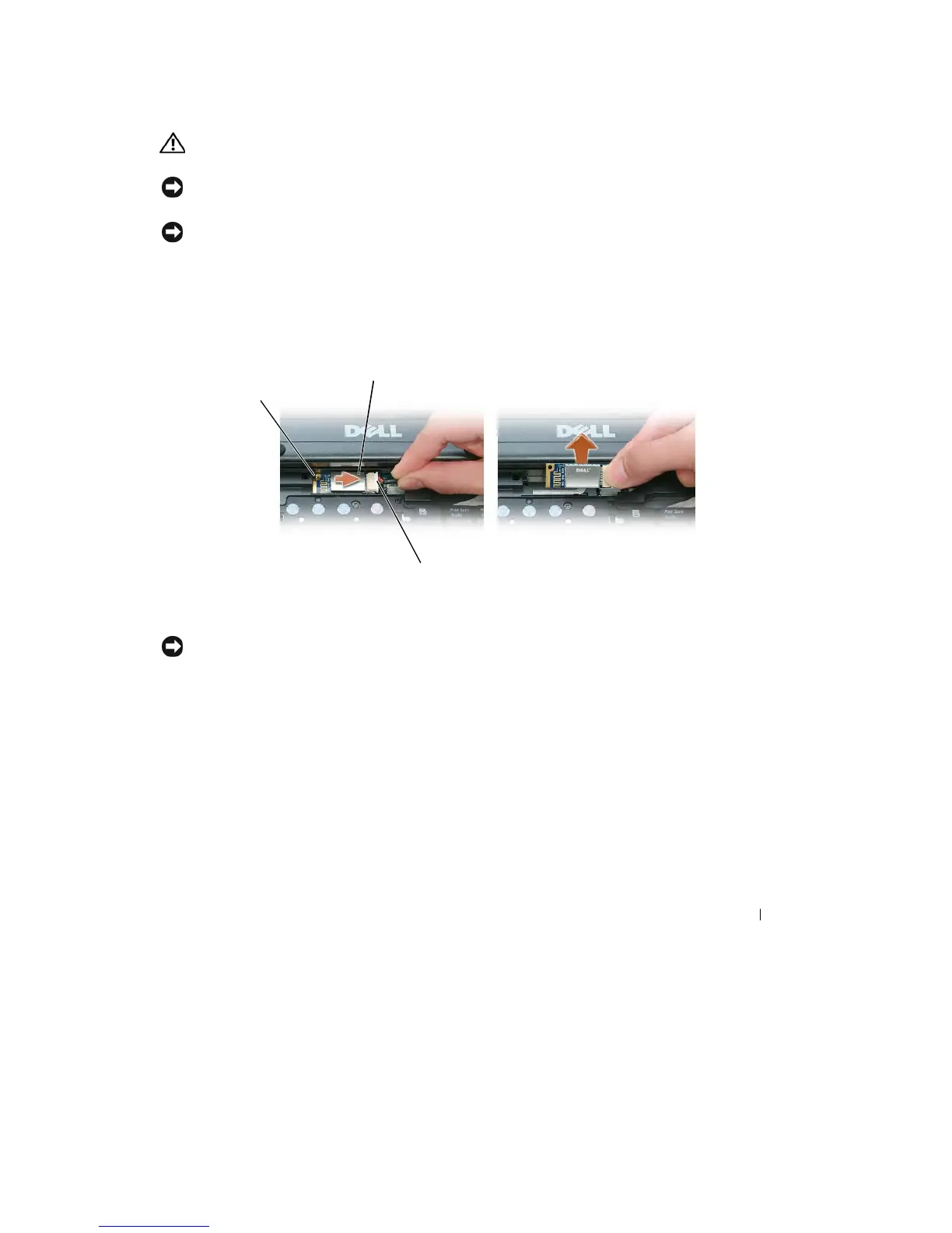 Be careful when removing the card to avoid damaging the card, card cable, or surrounding