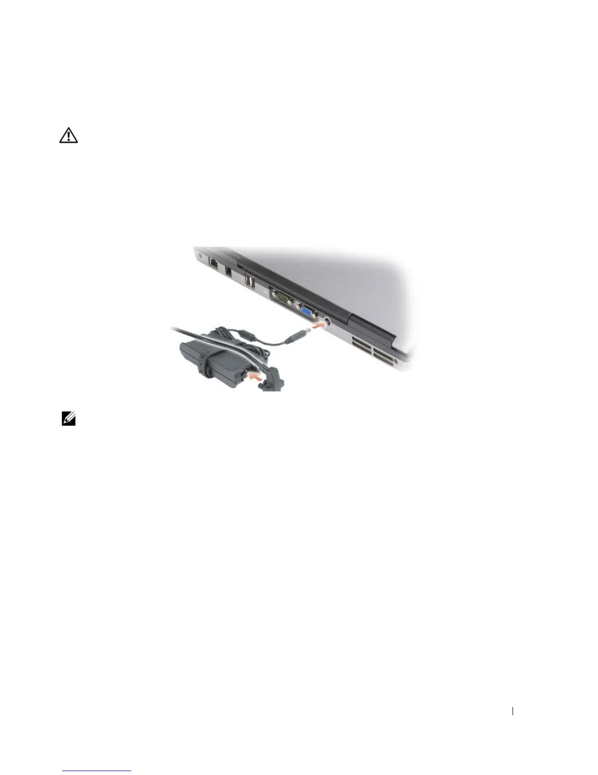 将交流适配器分别连接到计算机上的交流适配器连接器和电源插座上。