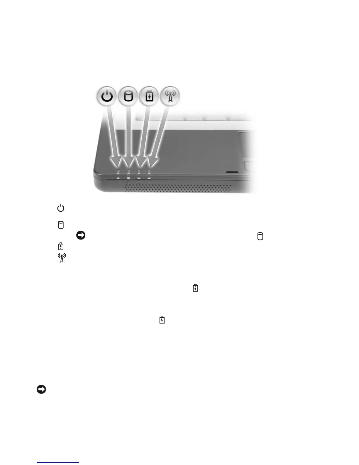 POWER BUTTON — Press the power button to turn on the computer or to enter or exit a power management mode.