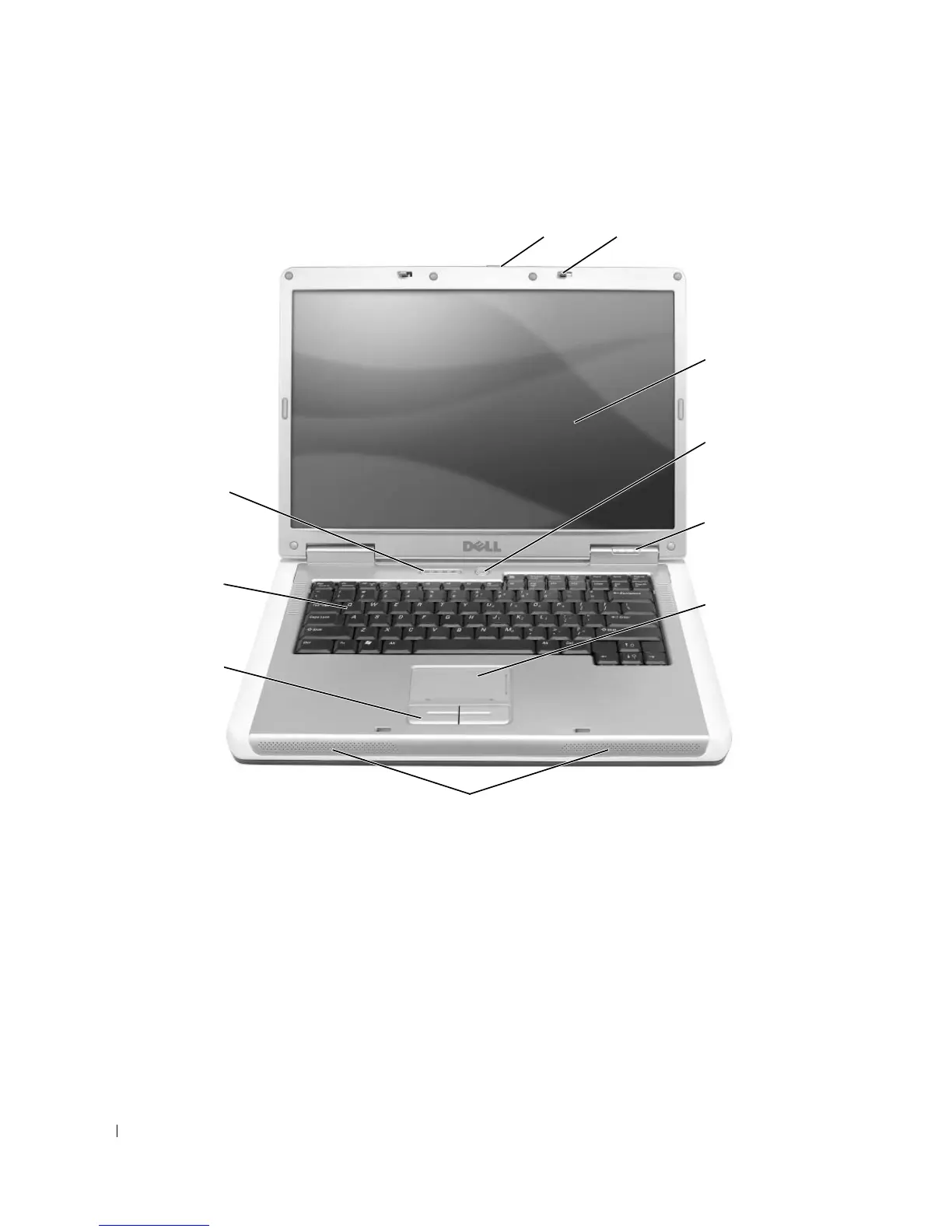 7 speakers (2) 8 touch pad buttons 9 keyboard