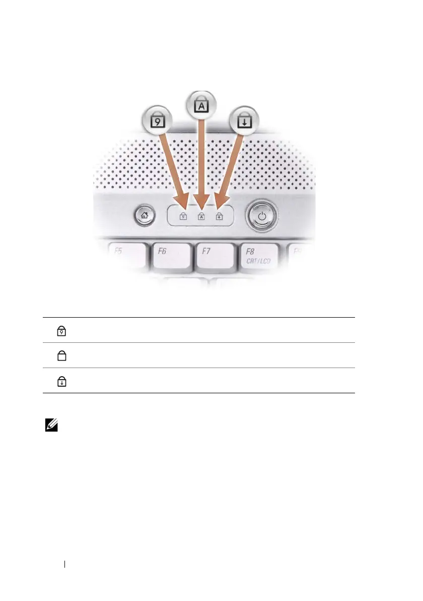 Turns on when the uppercase letter (caps lock) function is enabled.