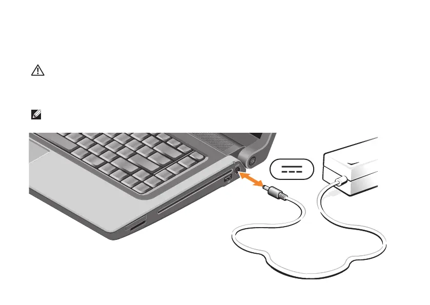 Connect the AC adapter to the computer and then plug it into a wall outlet or surge protector.