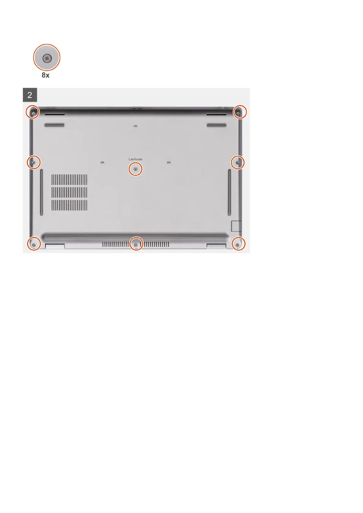2. Tighten the eight captive screws that secure the base cover to the palm-rest and keyboard assembly.