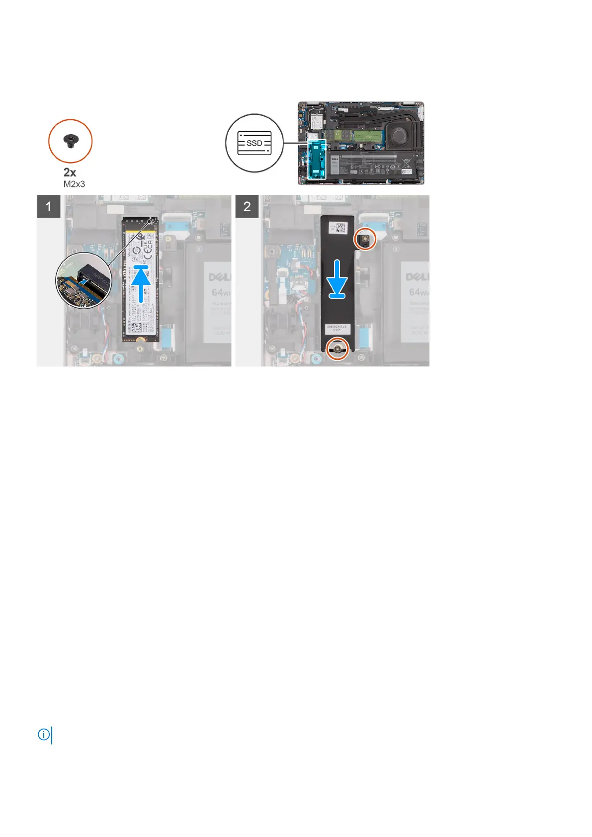 5. Replace the two screws (M2x3) that secure the 2280 solid-state drive and thermal plate to the palm-rest and keyboard