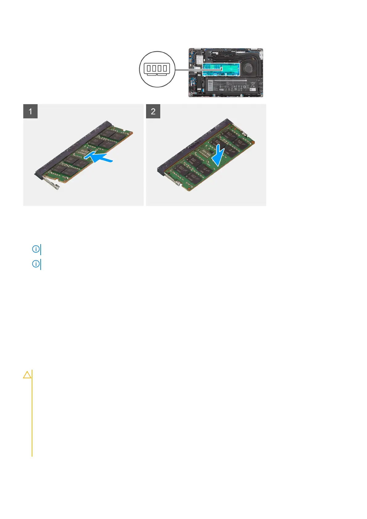NOTE: If you do not hear the click, remove the memory module and reinstall it.