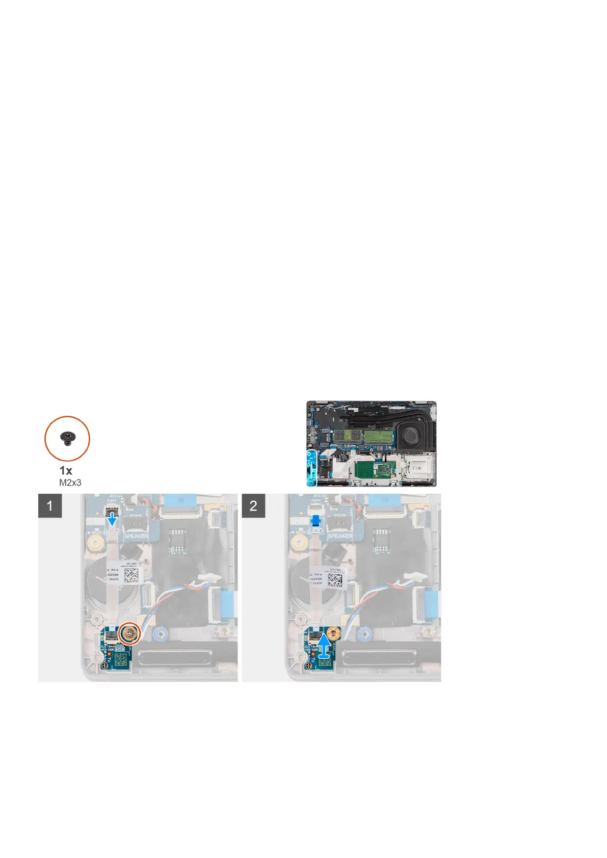 3. Remove the single screw (M2x3) that secures the LED board to the palm-rest assembly.