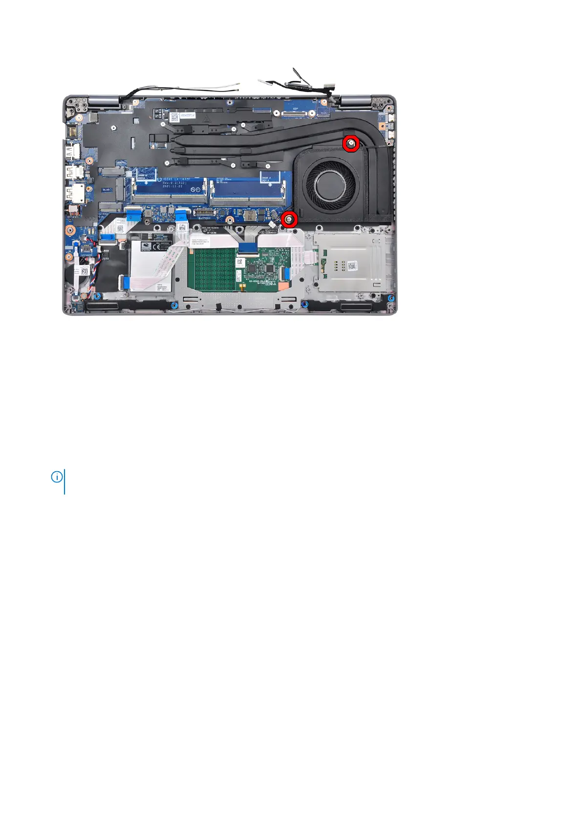 13. Remove the four (M2x3) screws that secure the system board to the palm-rest assembly and keyboard assembly.