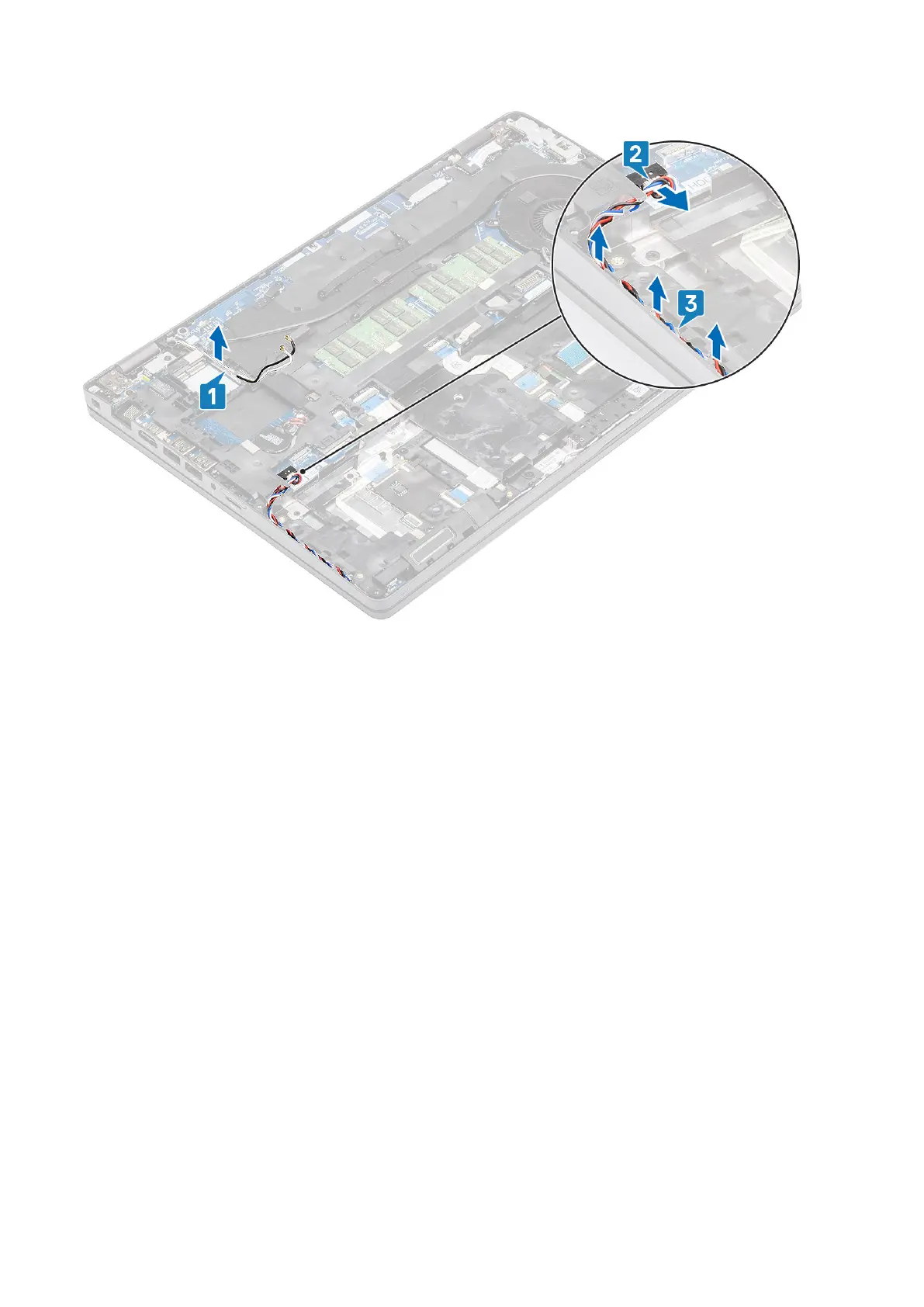 2. Remove the four (M2x5) and six (M2x3) screws that secure the palmrest bracket to the computer [1,2] and lift the bracket