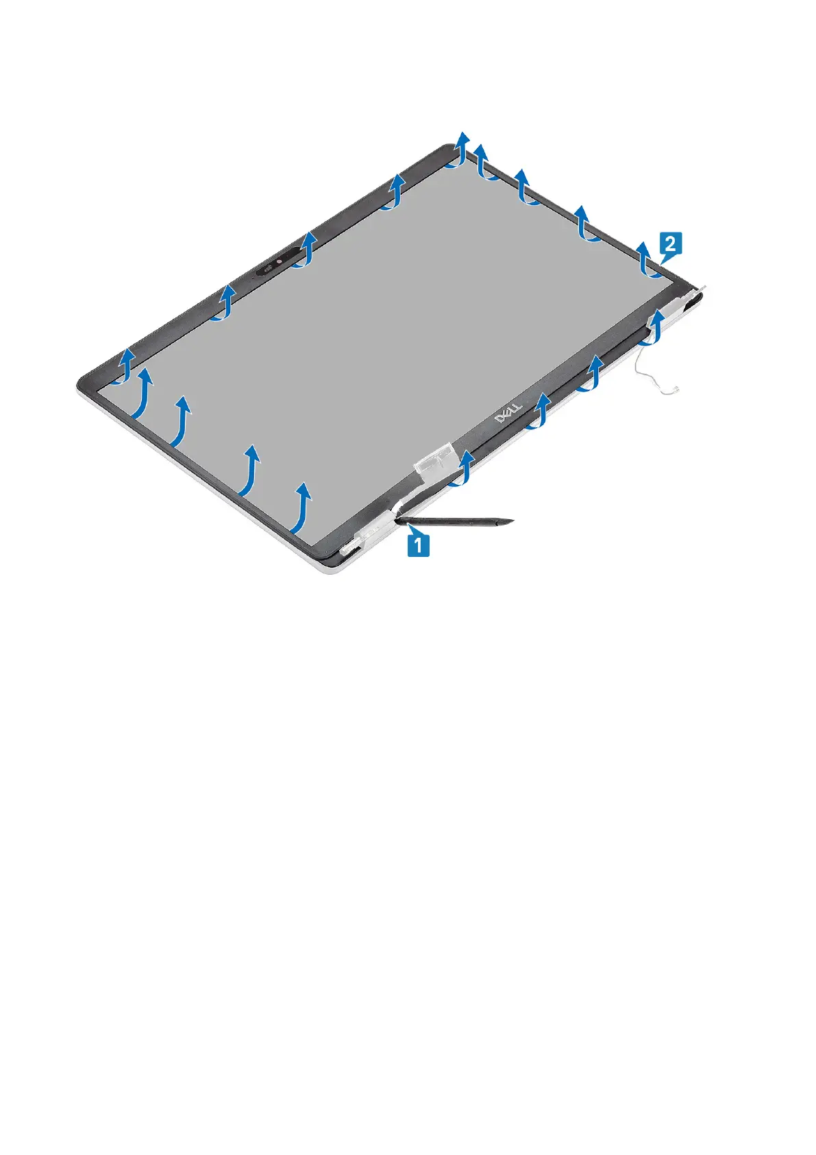 2. Carefully pry open the inside edge of the display bezel and then pry open the inside edge of the left and right sides of the