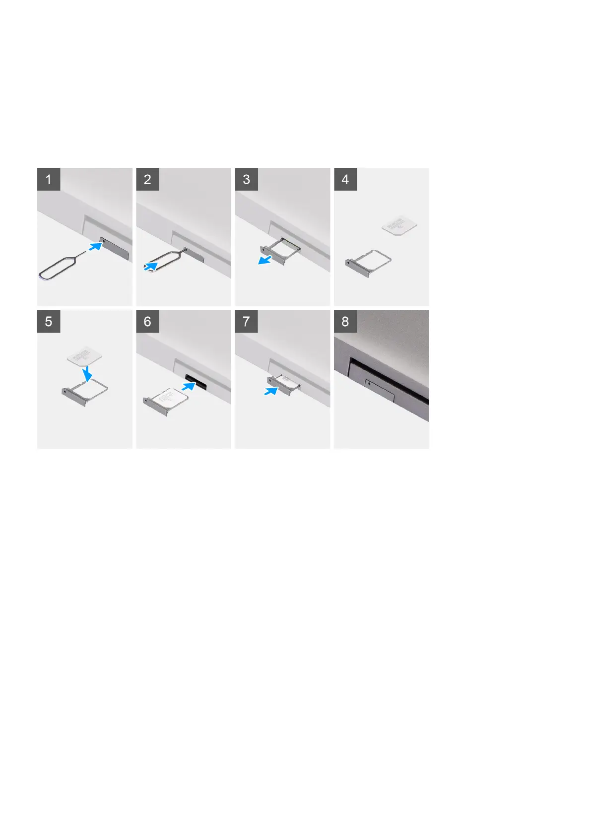 4. Align the SIM card tray with the slot on the computer and carefully slide it in.