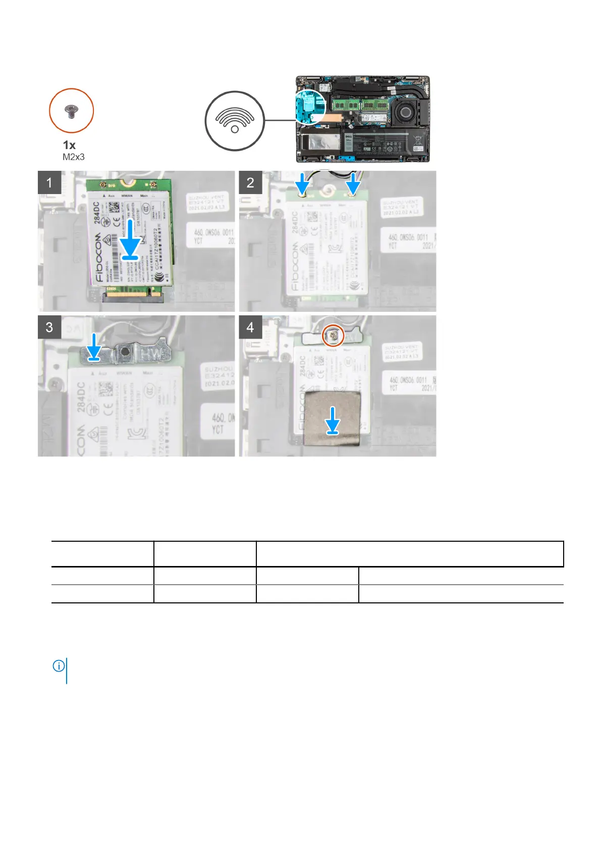 1. Connect the antenna cables to the WWAN card.