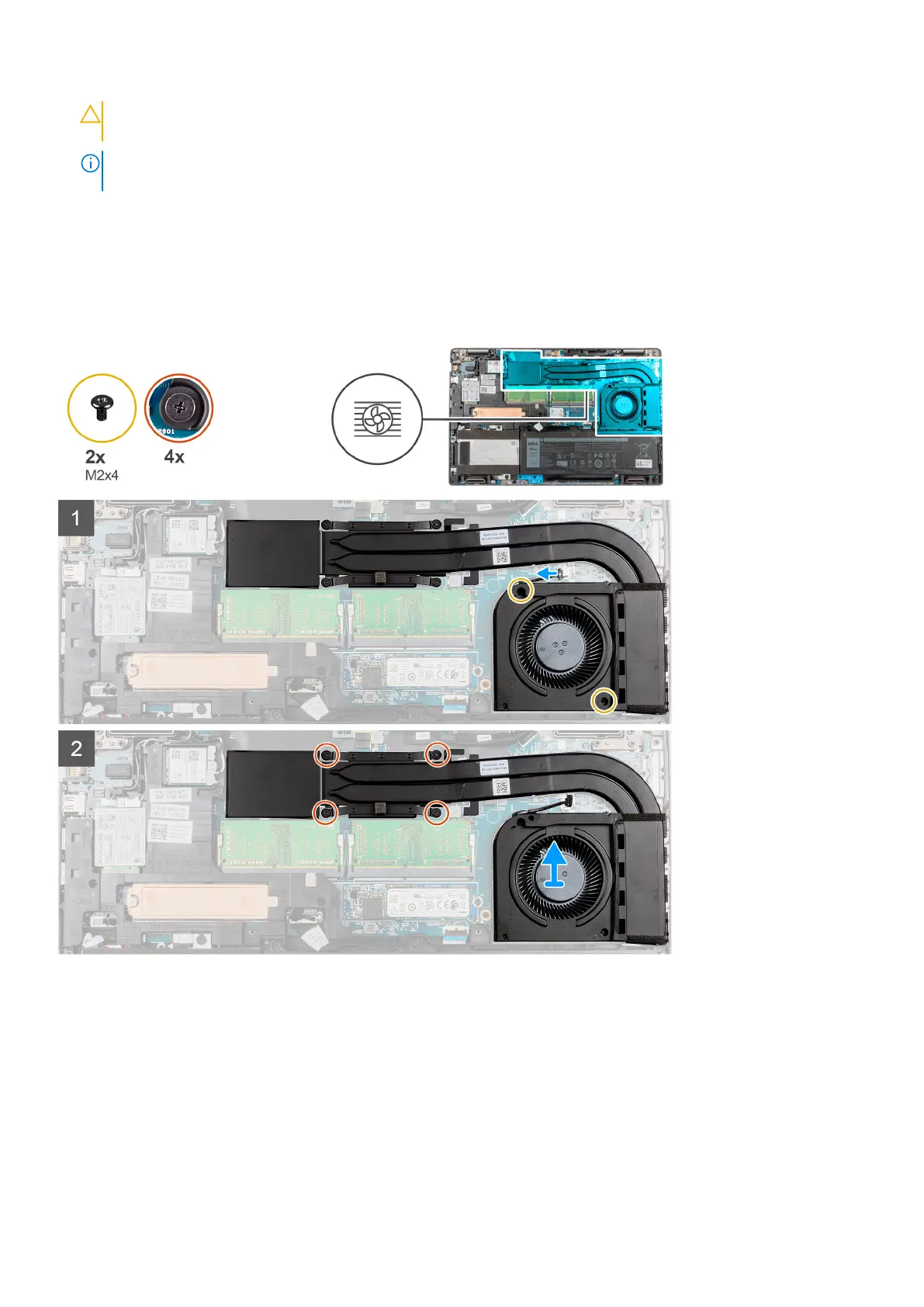 The following images indicate the location of the heat sink and fan assembly for a system with UMA configuration and provide a