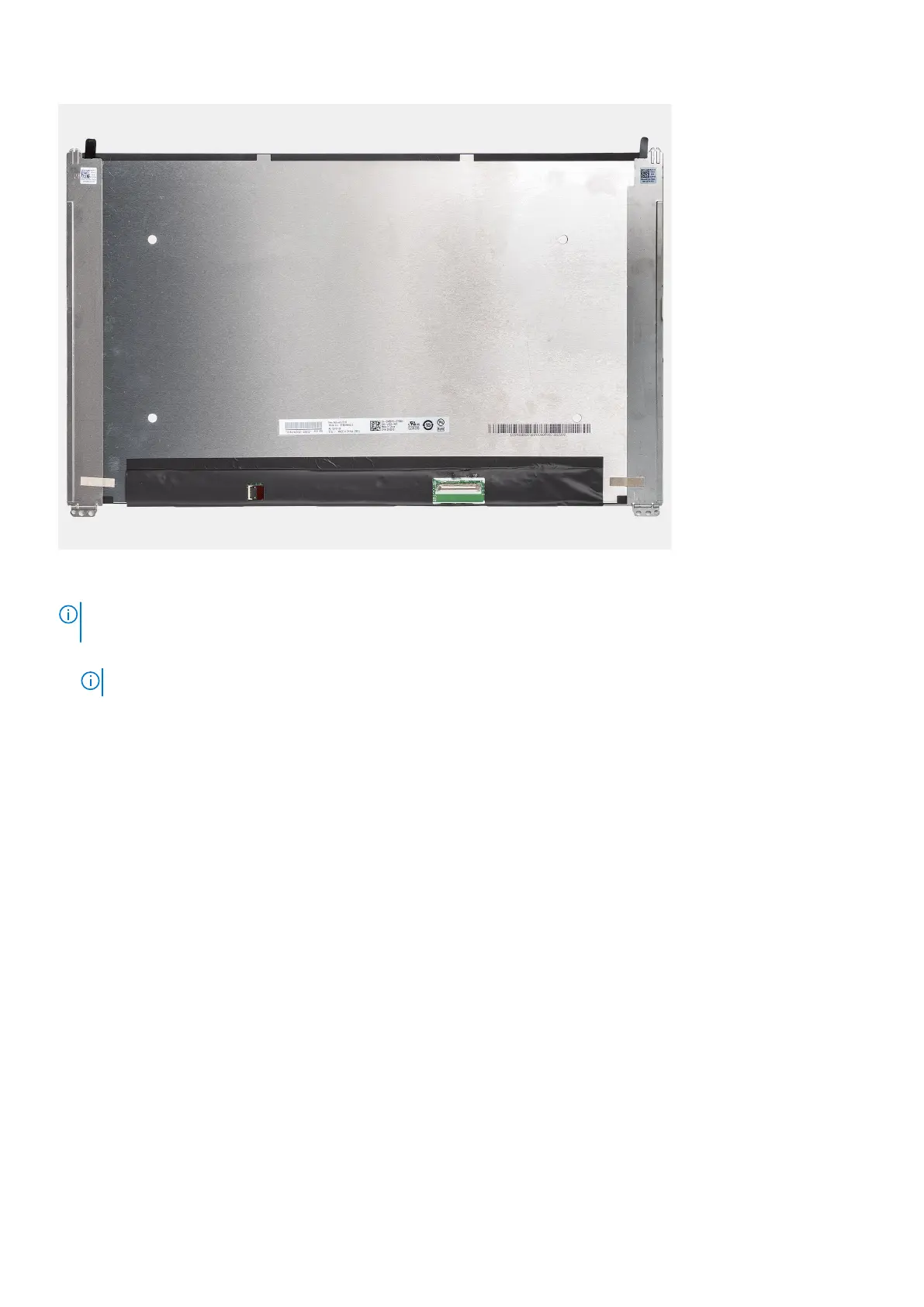 The display panel is preassembled with the display brackets as a single service part. Do not pull the Stretch Release
