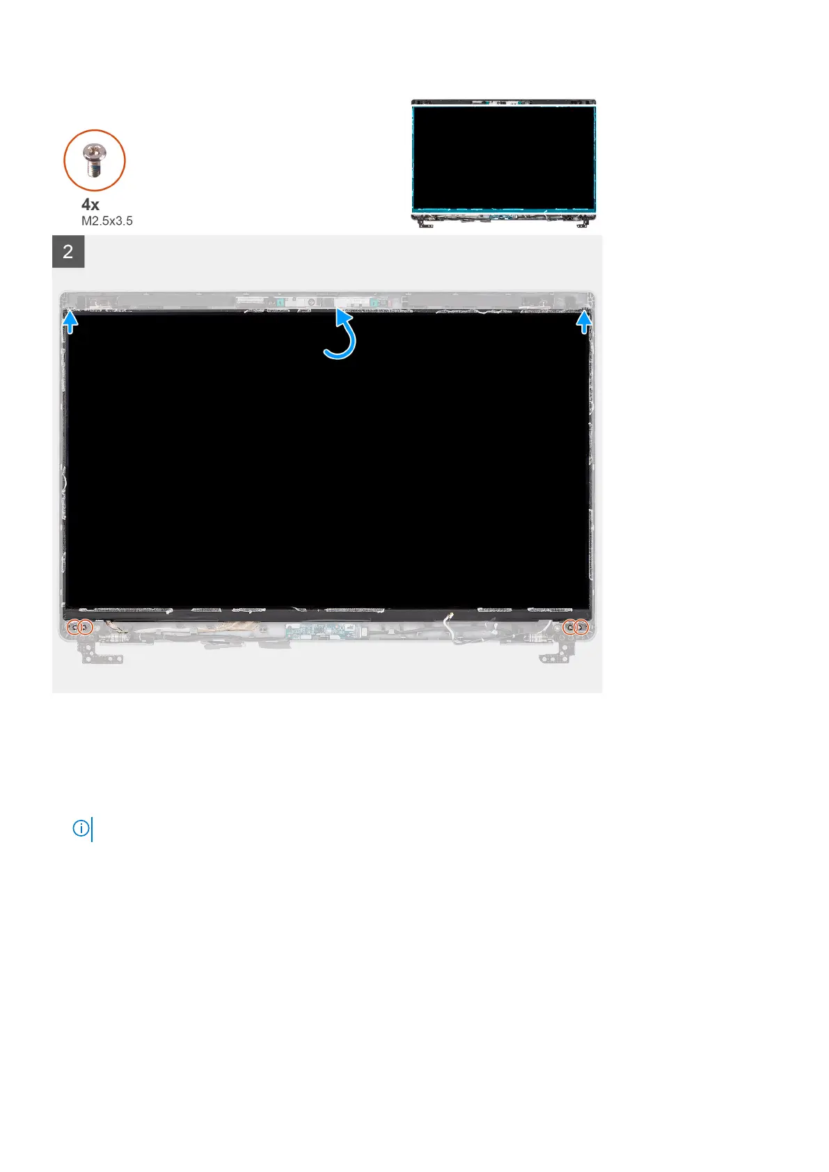 5. Replace the four (M2.5x3.5) screws to secure the display panel to the display back cover.