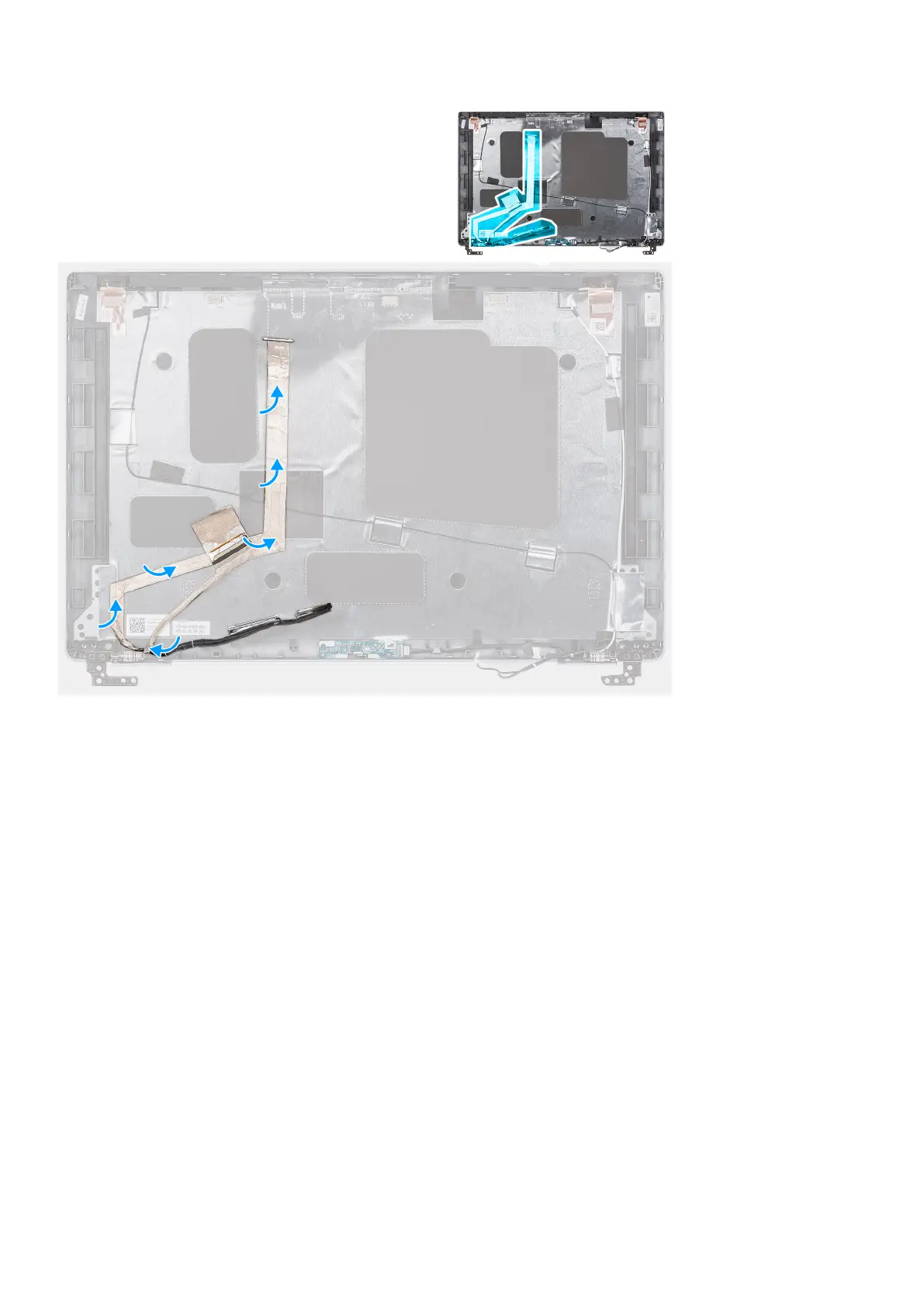 3. Adhere the conductive tape and route the eDP/display cable to the display back cover.
