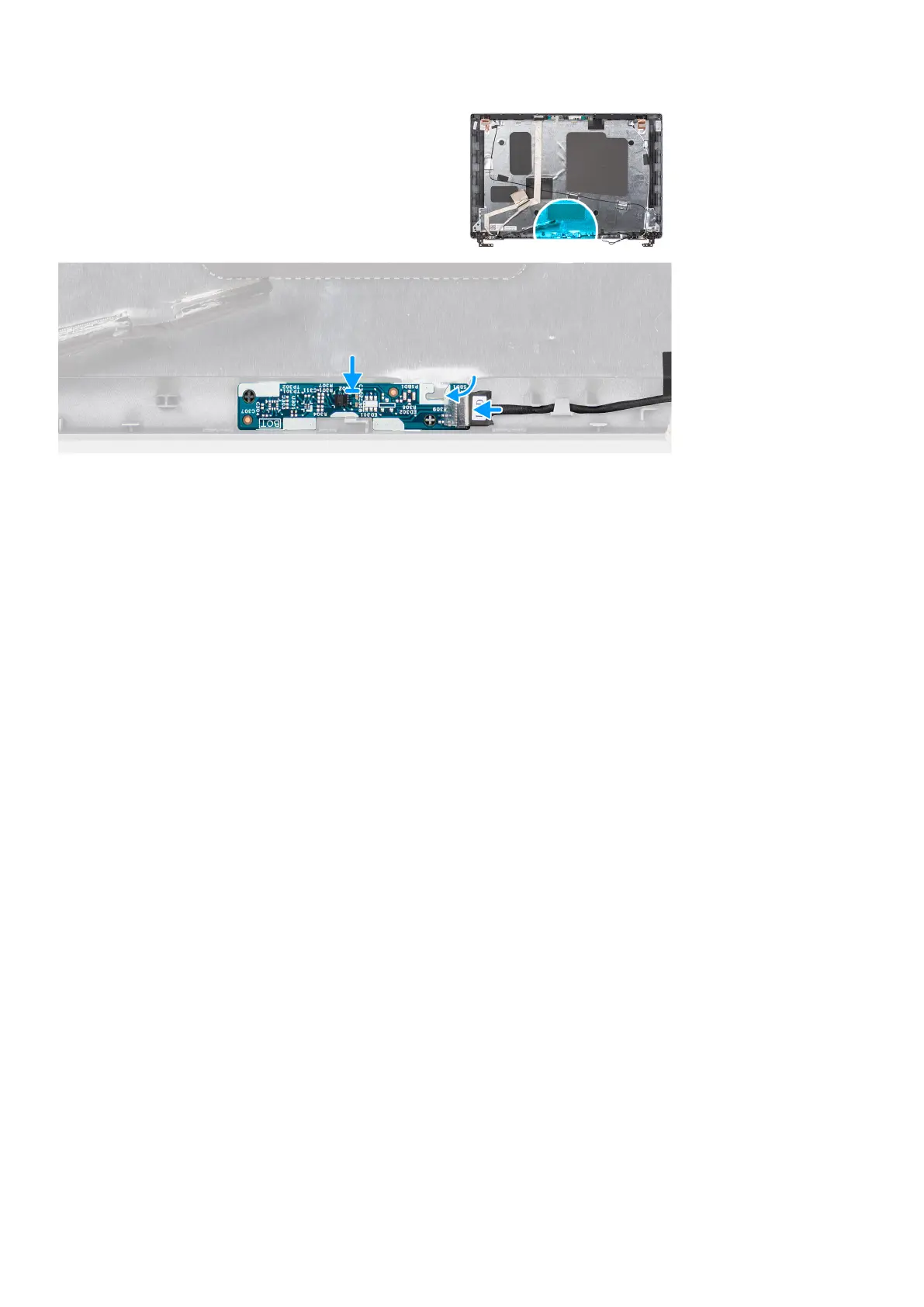 2. Connect the LED cable to the connector on the sensor board and close the latch.