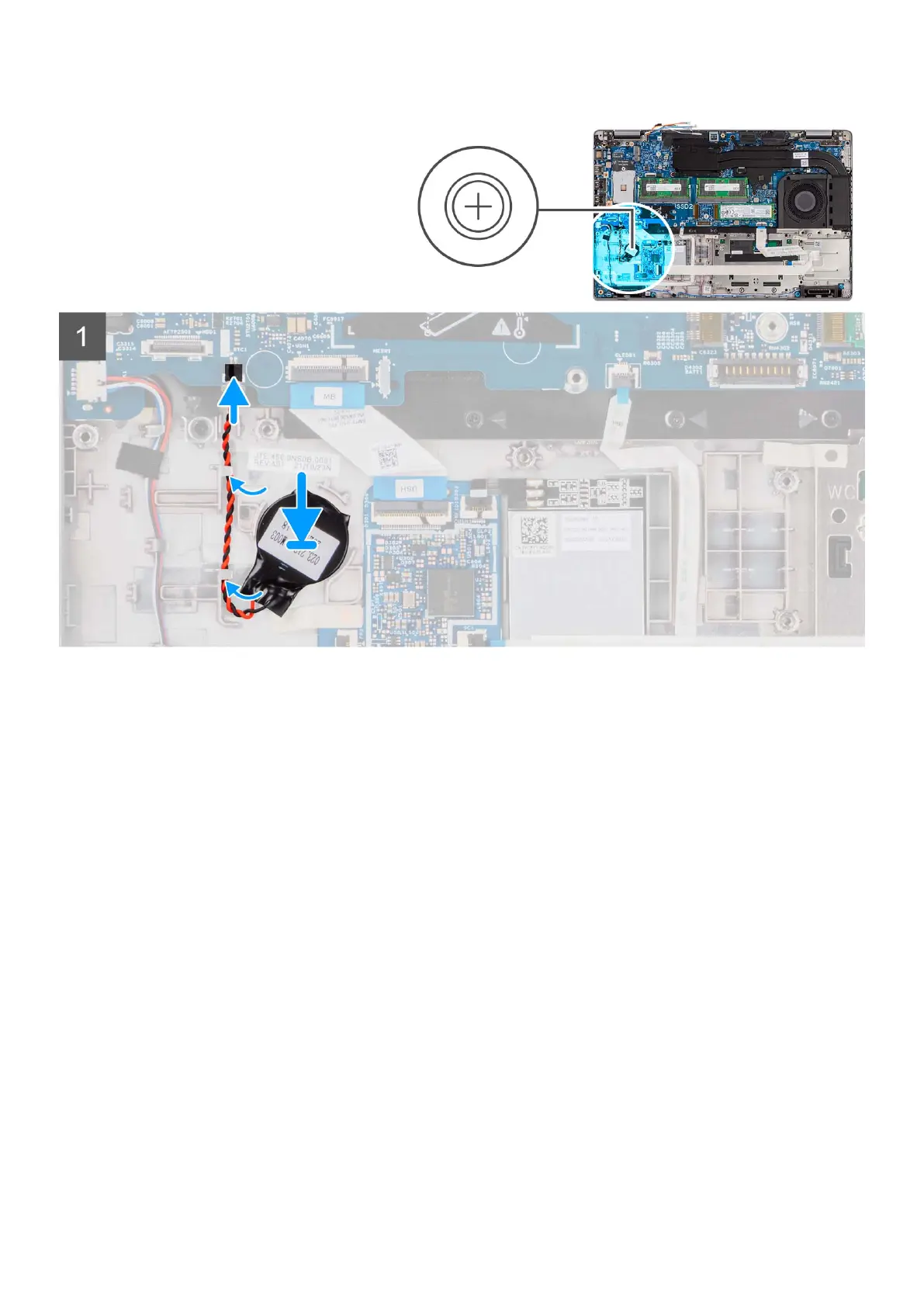 3. Connect the coin-cell battery cable to the connector on the system board.