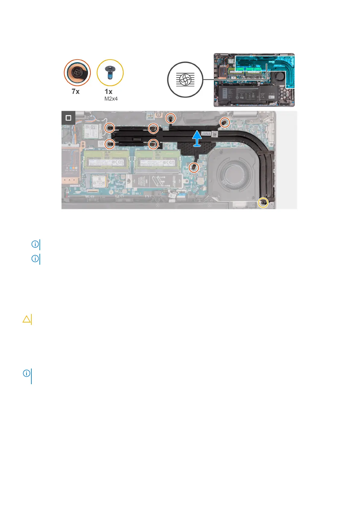 NOTE: Loosen the captive screws in the reverse sequential order mentioned on the heat sink [7 > 6 > 5 > 4 > 3 > 2 > 1].