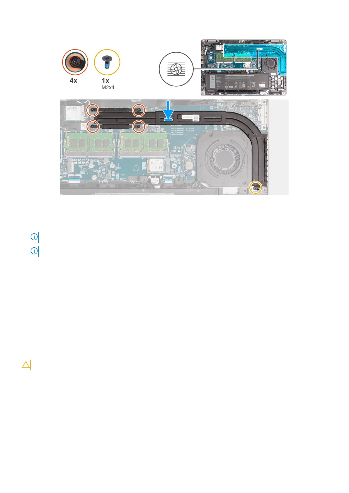 3. Replace the screw (M2x4) that secures the heat sink to the system board.