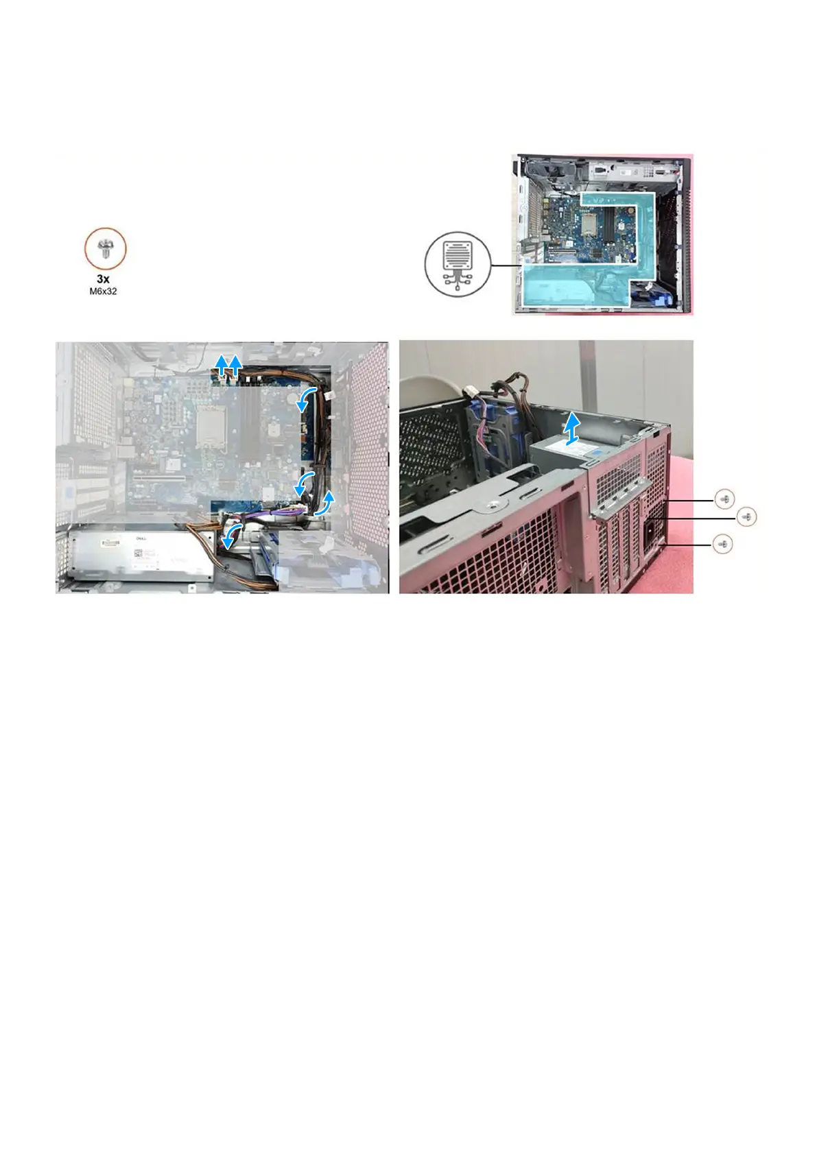 The following images indicate the location of the power-supply unit and provide a visual representation of the removal