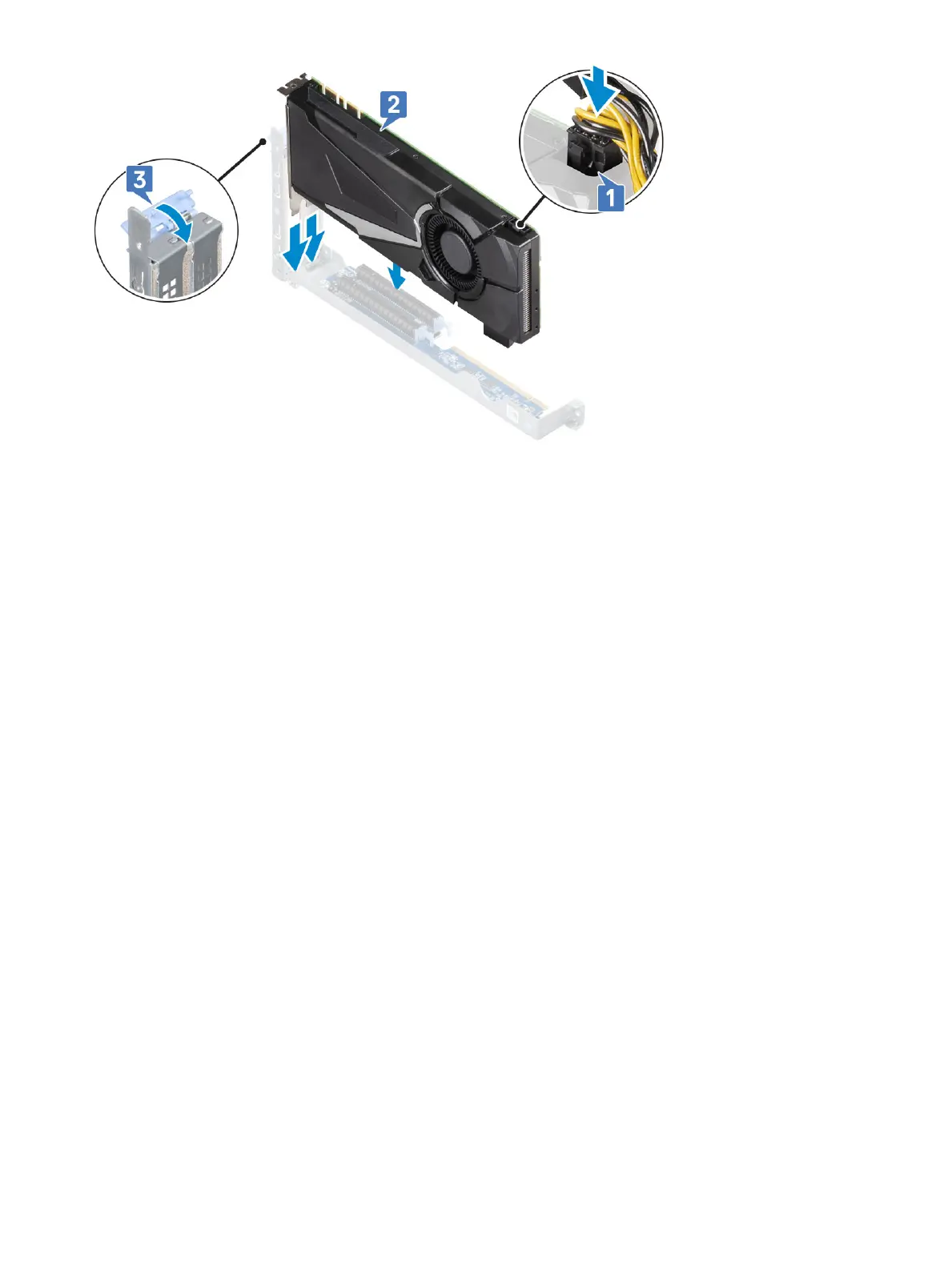 b Push the release tab on the PCIe slot [2], lift out the Dell Ultra-speed Drive Duo Card from slot [3].