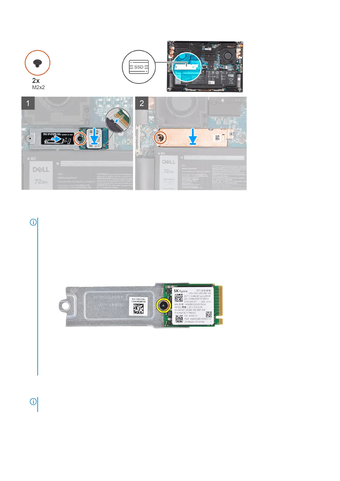 Install the M.2 2230 solid state drive to the SSD bracket so that the top side (with the sticker) of the M.2 2230