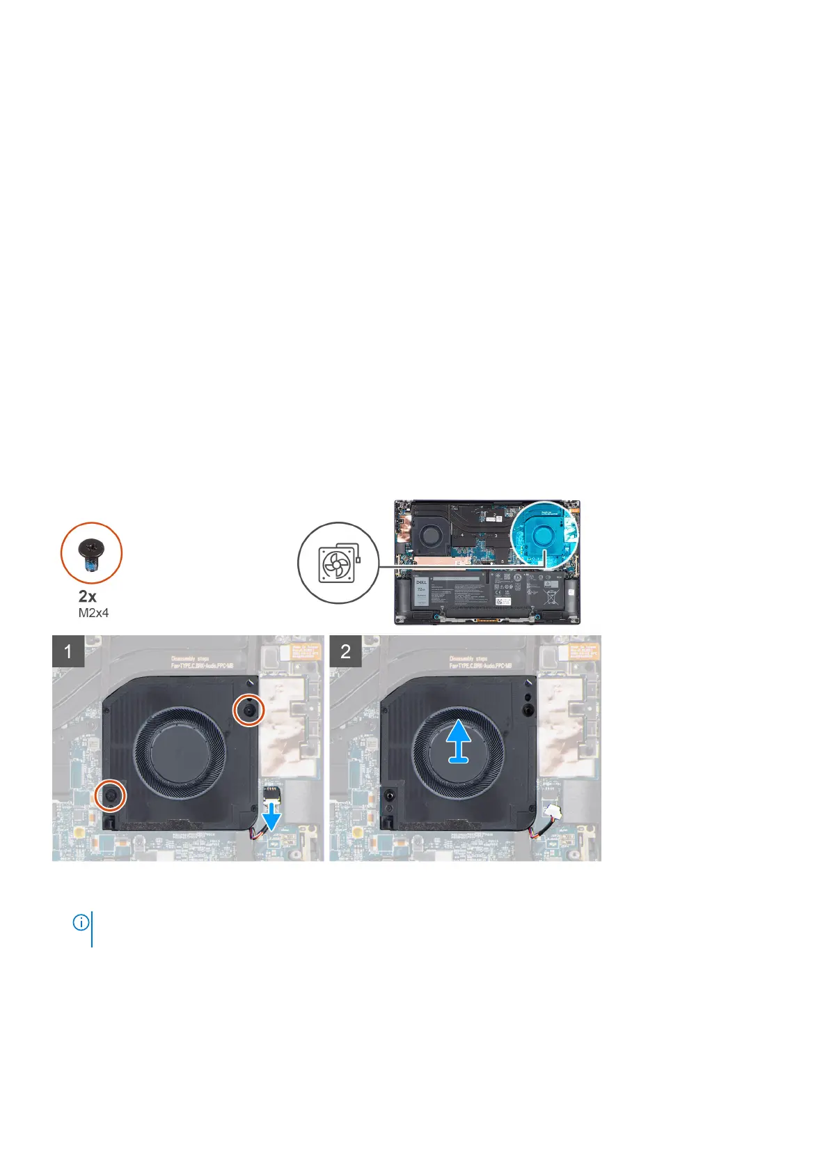 The following images indicate the location of the left fan and provide a visual representation of the removal procedure.