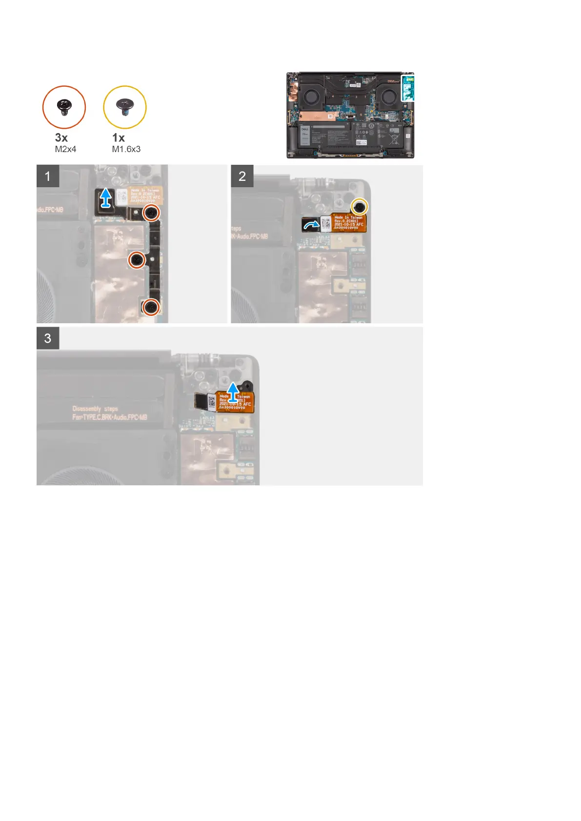 1. Remove the three (M2x4) screws that secure the left USB Type-C bracket to the system board.