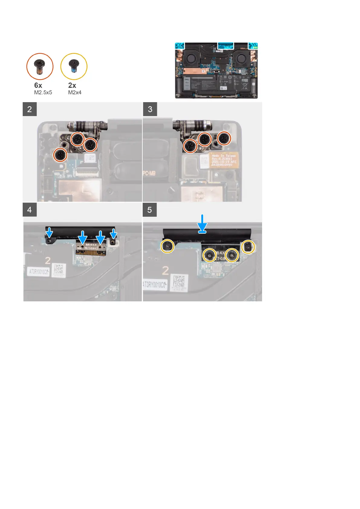 2. Replace the six (M2.5x5) screws to secure the display assembly to the palm-rest and keyboard assembly.