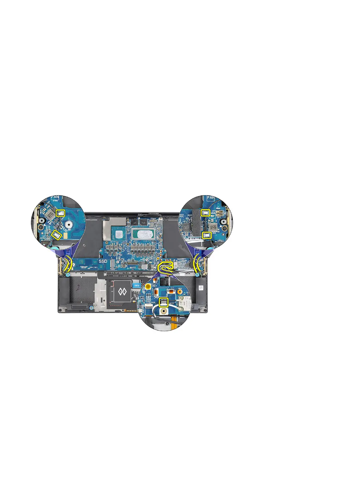 1. Unroute the cables for the left and right tweeter speakers and the WLAN antennas (for models that are shipped with WLAN