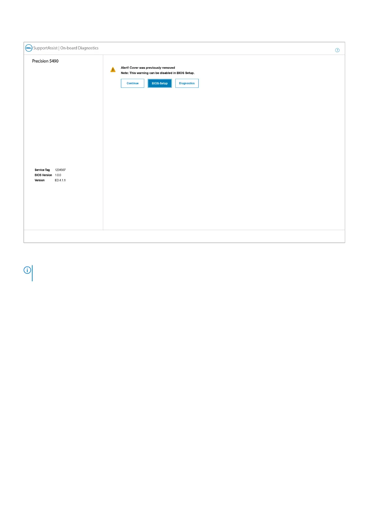 To clear the alert, select ON in the Clear Intrusion Warning field in the Security submenu of the BIOS setup menu.