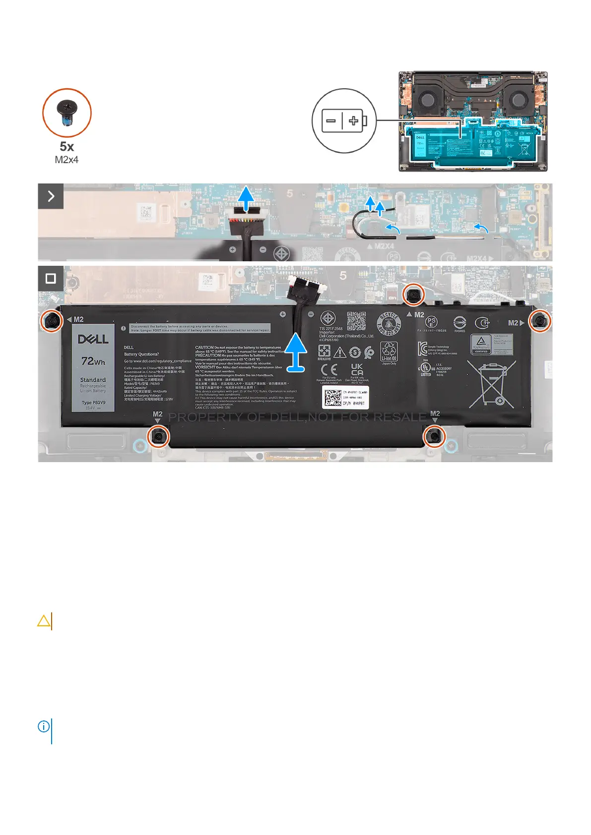 3. Remove the five screws (M2x4) that secure the battery to the palm-rest and keyboard assembly.