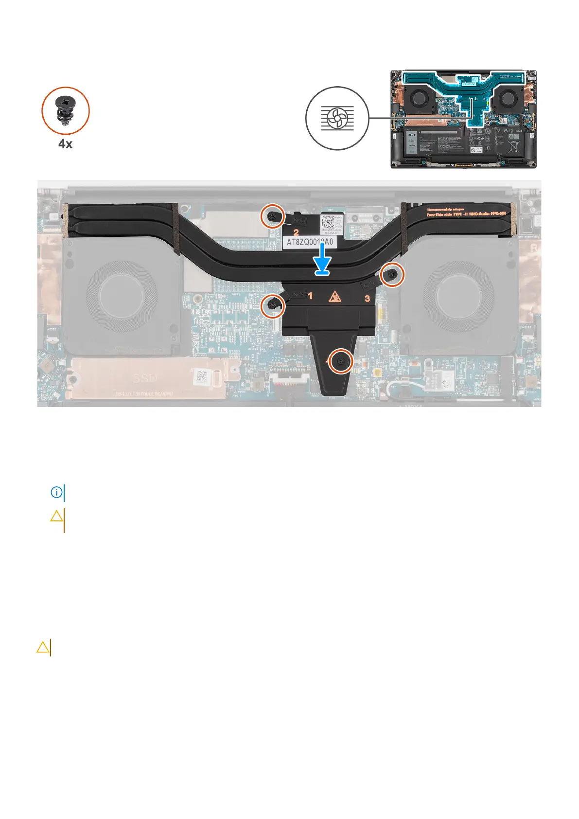 NOTE: Tighten the captive screws in the order that is marked on the heat sink next to the screws [1 > 2 > 3 > 4].