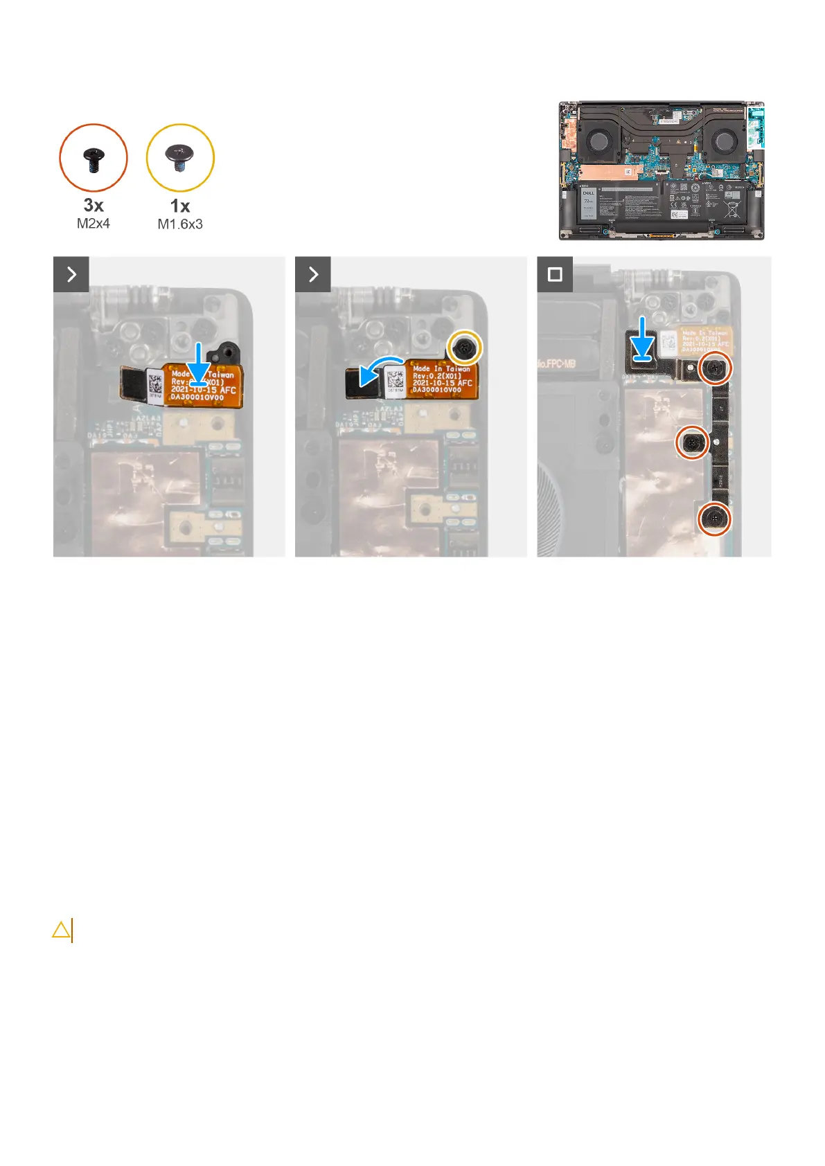 5. Replace the three screws (M2x4) to secure the left USB Type-C bracket to the system board.