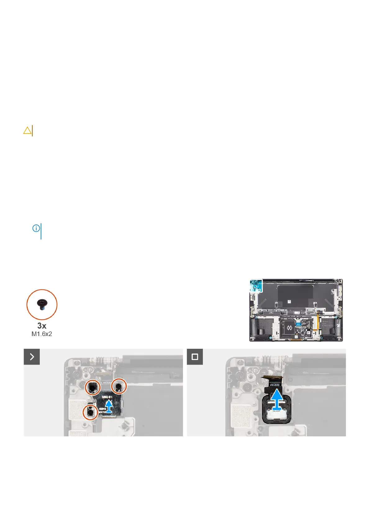 1. Remove the three screws (M1.6x2) that secure the fingerprint-reader bracket to the power-button board.
