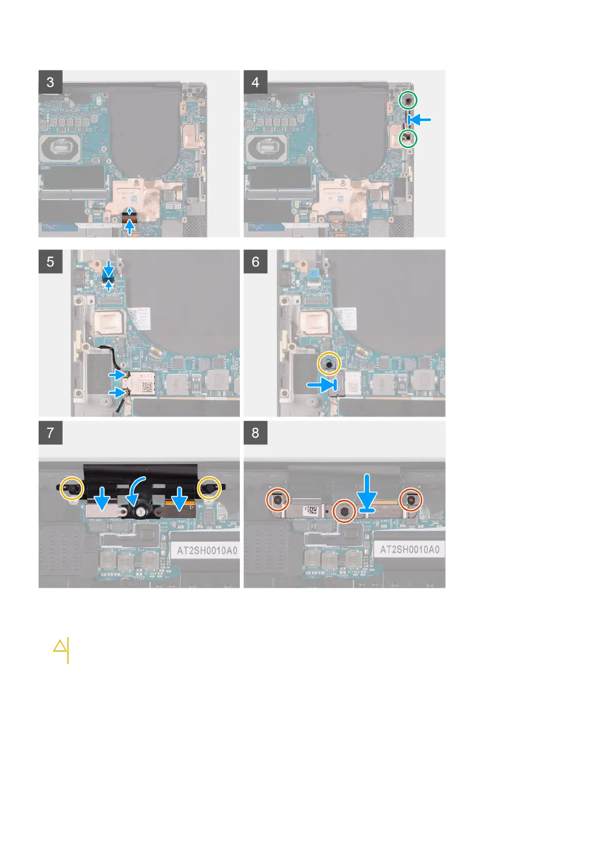 4. Replace the two screws (M2x4) that secure the system board to the palm-rest and keyboard assembly.