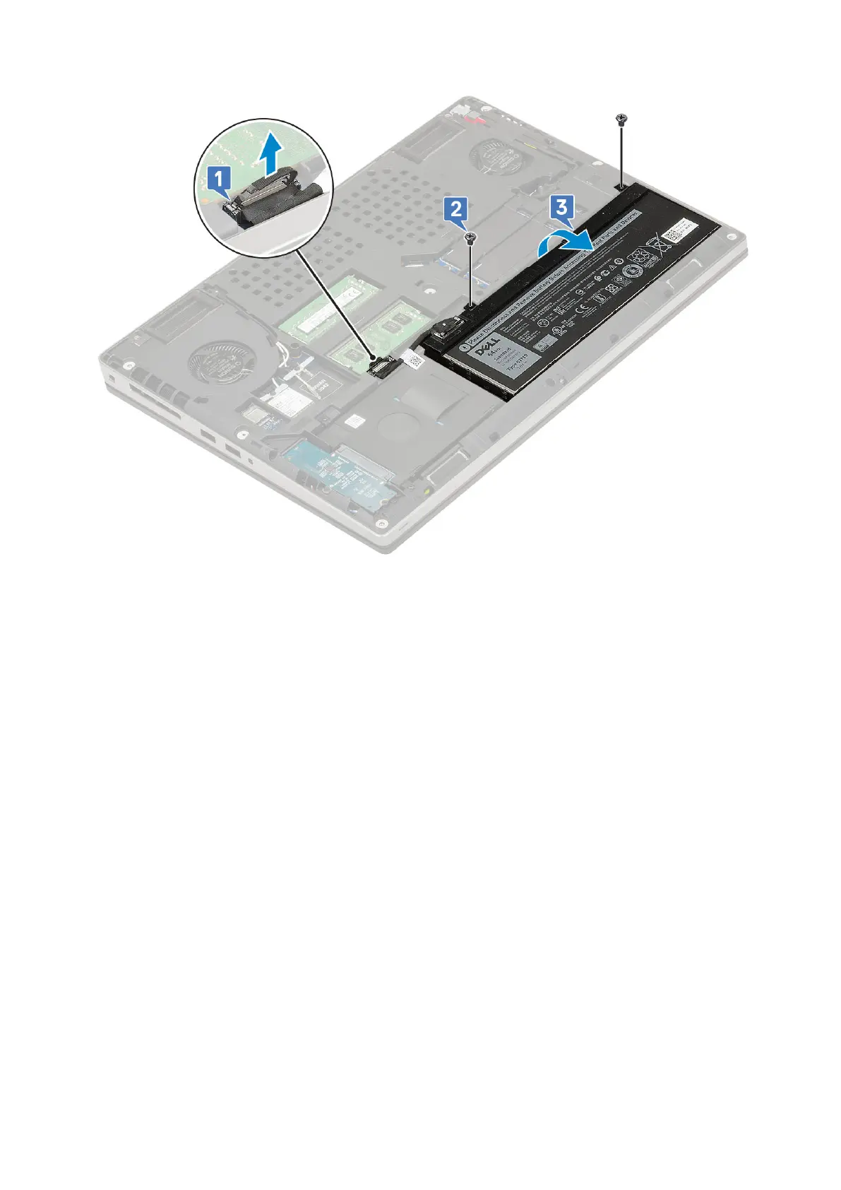 b. Replace the 3 (M2.5x3.0) screws to secure the battery to the system [2].