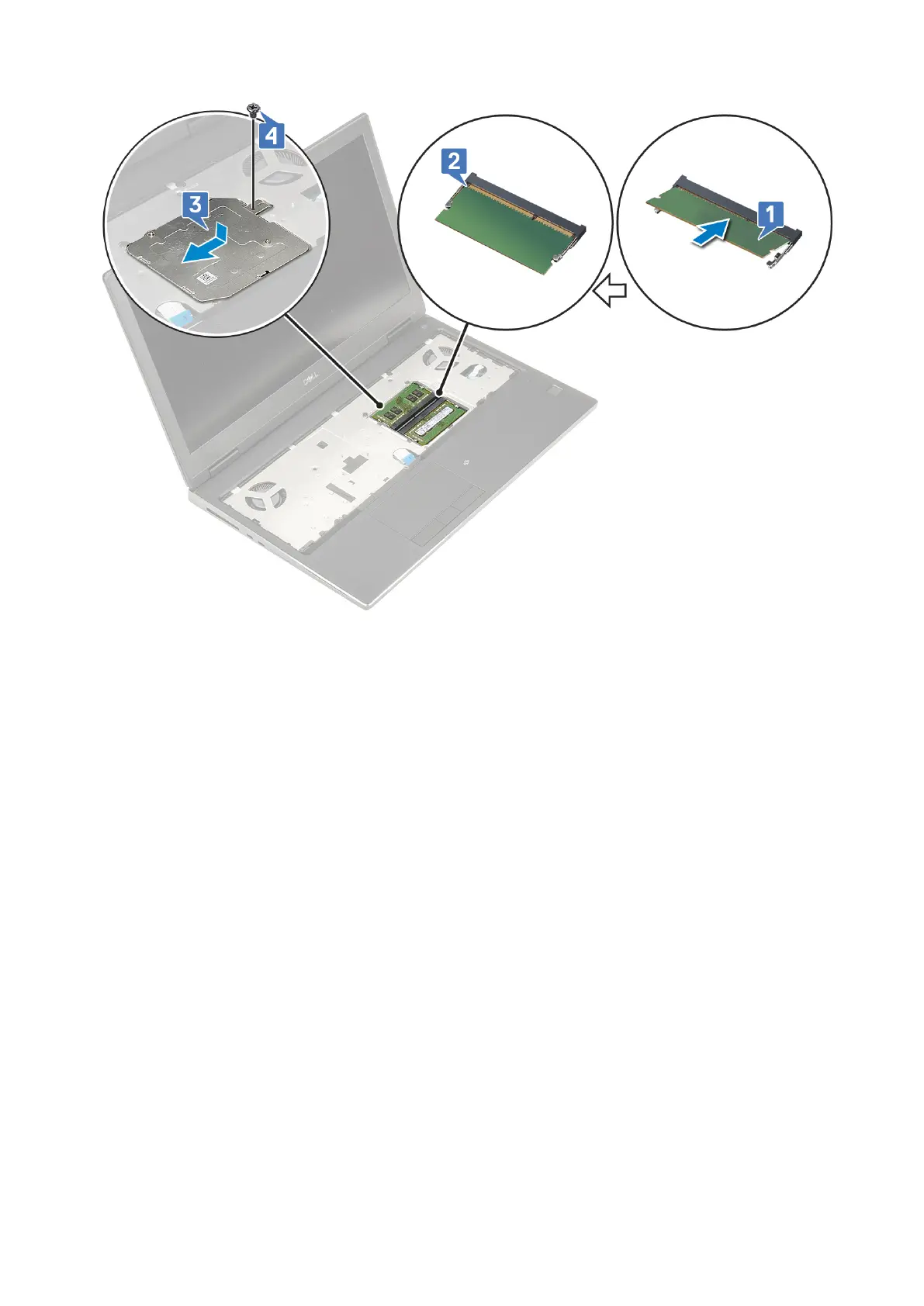 d. Remove the WWAN card from the WWAN card slot in the system board [4].