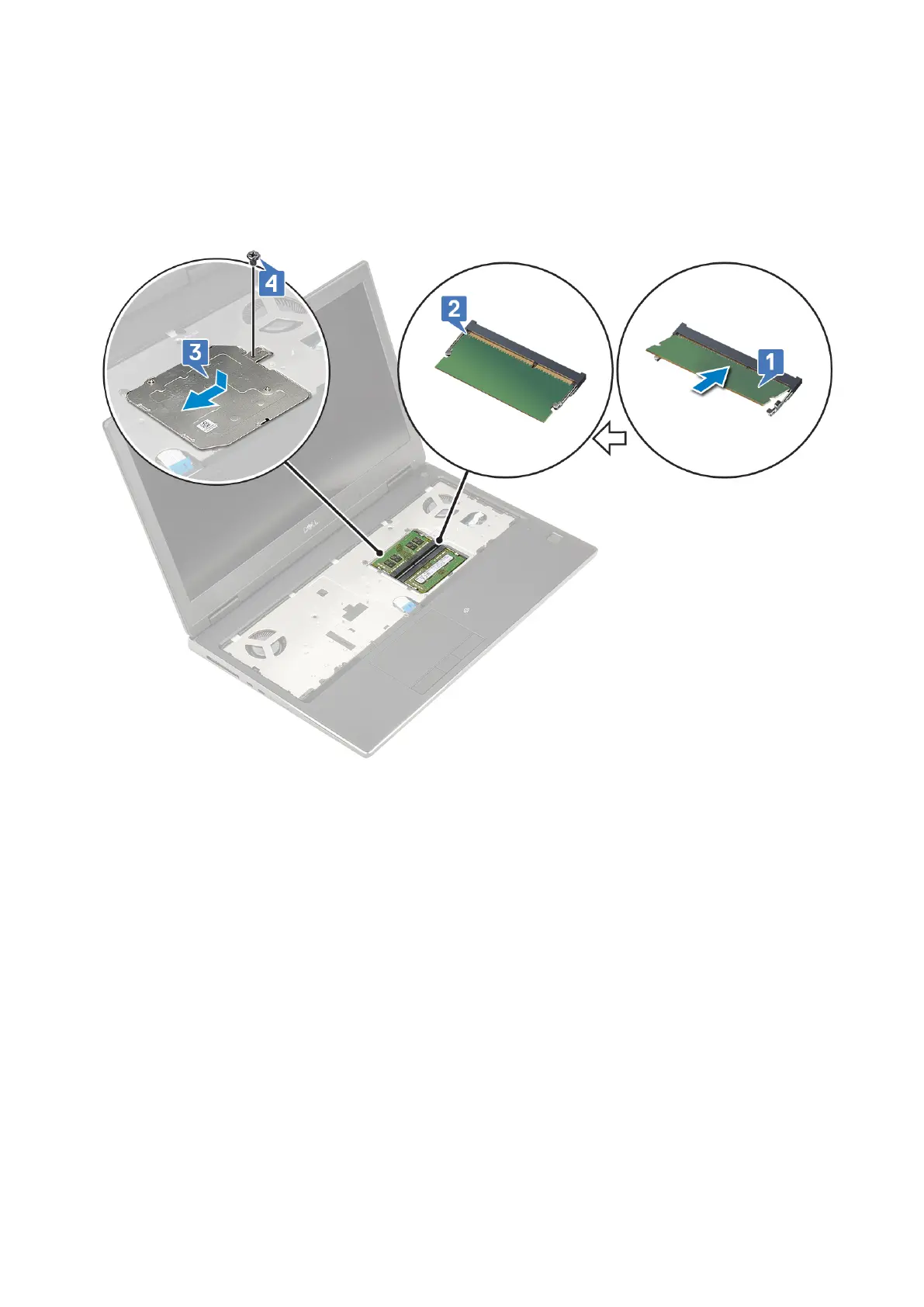 d. Replace the single (M2.0x3.0) screw to secure the memory shield to the memory module [4].
