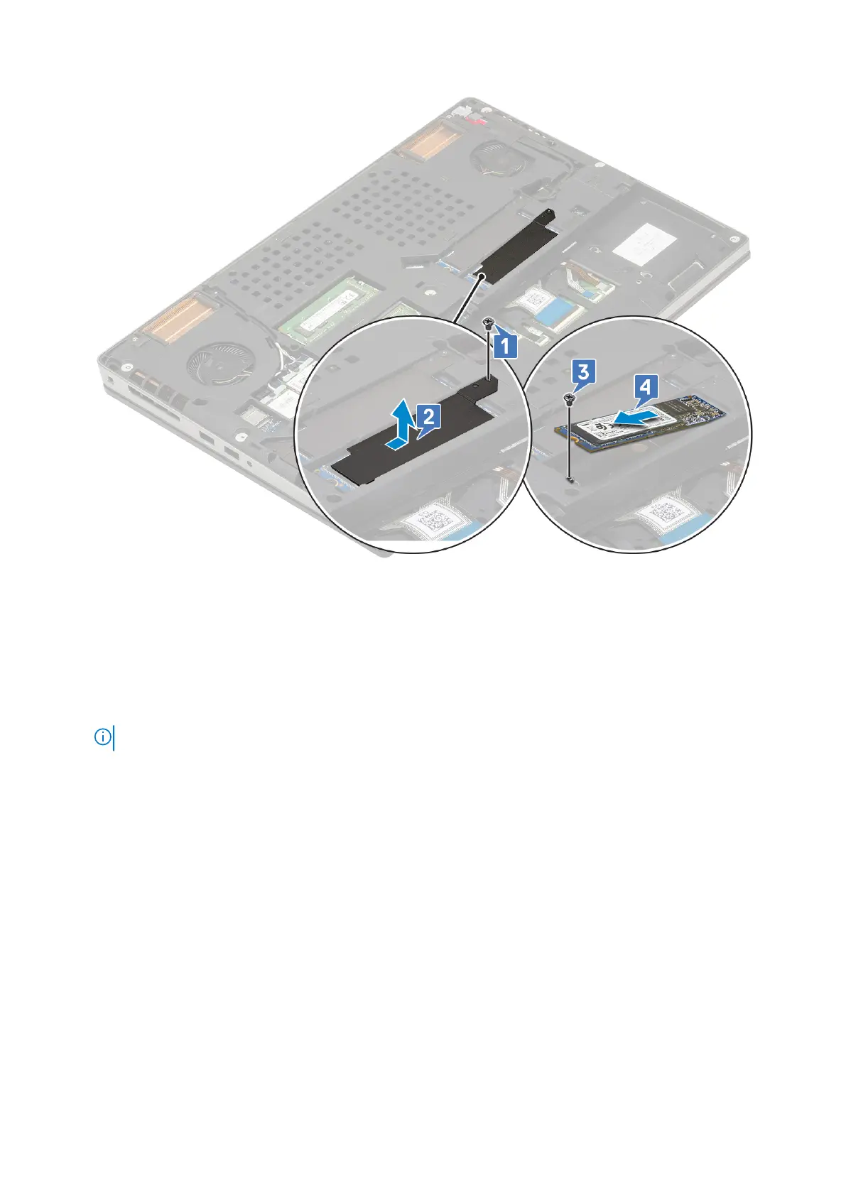 d. Replace the single (M2.0x3.0) screw to secure the thermal plate to the M.2 SSD [4].
