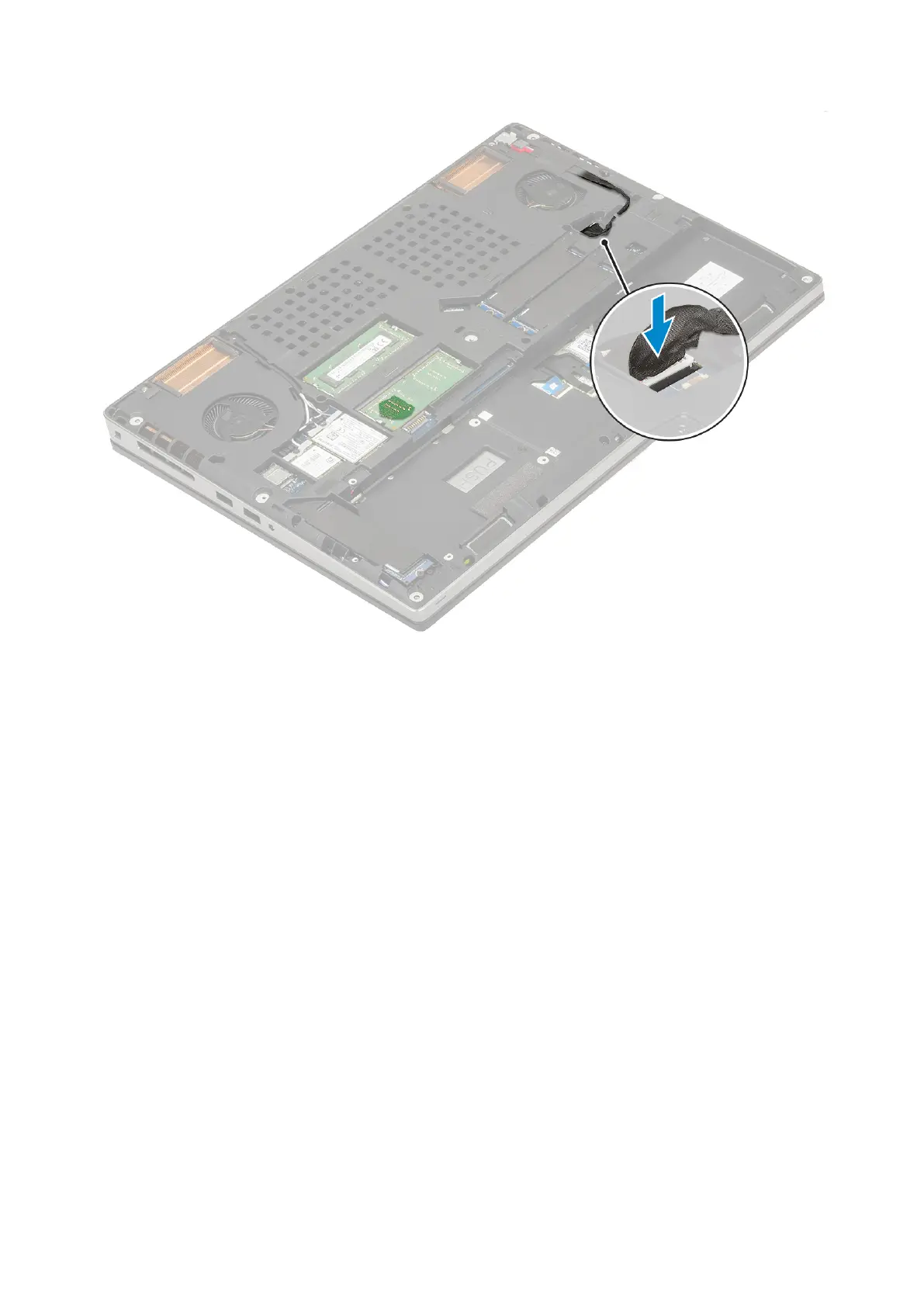 a. Lift the latch and disconnect the touchpad cable from the connector on the system board [1].